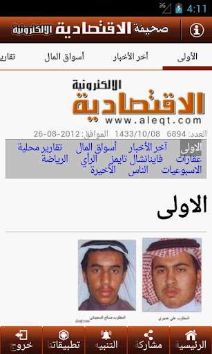 تطبيق صحيفة الإلكترونية الإقتصادية للهواتف الاندرويد معلومات من التطبيق انطلقت في كانون الأول (ديسمبر) عام 1992 في الرياض، صحيفة الاقتصادية يومية ناطقة باللغة العربية، تركز بصورة خاصة على الأخبار الاقتصادية والتجارية والتحليل. وتقدم الصحيفة التغطية الإخبارية إضافة إلى البحث والتحليل والتعليق على الأحداث الاقتصادية، والتجارية المحلية، والإقليمية، والدولية. وتتمم الصحيفة تغطيتها للأخبار التجارية والاقتصادية الإقليمية بمقتطفات مترجمة من مطبوعات تجارية دولية رائدة، من بينها فاينانشال تايمز، وهارفارد بزنيس ريفيو، وانسياد، وفرانكفورتر. وتستهدف الصحيفة بصورة خاصة المختصين في الحقل، والمستثمرين، وكبار موظفي الحكومة في المملكة العربية والسعودية ودول مجلس التعاون الخليجي. وتشرع الصحيفة في إضافة المزيد، وتوسعة تغطيتها الجغرافية لتشمل دول مجلس التعاون الخليجي، من أجل توسعة قاعدة قراء الصحيفة. ونظراً لكونها الصحيفة السعودية والإقليمية اليومية التي تركز حصرياً على الأخبار الاقتصادية والتجارية والتحليل، فإن صحيفة الاقتصادية تعتبر في الوقت الراهن الصحيفة اليومية الوحيدة المتخصصة في الأخبار المالية صور من التطبيق https://lh5.ggpht.com/0AKu4L11qtFLPr...vamR7ZiX0=w124 https://lh5.ggpht.com/BG3Z-Jxkpauthf...OXHr5WKln=w705 https://lh4.ggpht.com/_j4DbfFs_tN7OC...RvINvgfQsSecdk https://lh3.ggpht.com/7YYGDnGJj1tWcS...fEMbwt5Gx9HHWU https://lh6.ggpht.com/rLs8lvMfwVH9vM...5IgZGPWFtzfdic https://lh5.ggpht.com/vdeoyx1oyi4oYK...FPzqlxGmGFX6Jc لتجميل التطبيق من ماركت الأندرويد إضغط هنا https://play.google.com/store/apps/details?id=com.steptodev.aleqt#?t=W251bGwsMSwyLDIx MiwiY29tLnN0ZXB0b2Rldi5hbGVxdCJd |