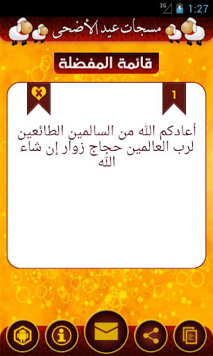 قنبلة عيد الاضحى وهى تطبيق يحتوى على اجدد واحدث المسجات للأندرويد وصف التطبيق هو تطبيق يحتوى على اجمل مسجات عيد الأضحى لتهنئة الأهل والأصدقاء . يمكنك التطبيق من انشاء قائمة الرسائل المفضلة لتوفير الوقت . ايضا يمكنك من مشاركة الرسائل على مواقع التواصل الاجتماعى . كل عام وأنتم بخير . **عساكم من عواده** صور من التطبيق https://lh4.ggpht.com/51PwrAp3ArFwkx...uohuU-OJw=w124 https://lh5.ggpht.com/Rtk25D8DLmW1F4...k8Kh6NGRQ=w705 https://lh4.ggpht.com/7ku9hHZjKStjSb...FVfdd9u4_EBkrQ https://lh3.ggpht.com/m68vsyfYK4W88z...8hpMvwnSz7tnD0 https://lh5.ggpht.com/wEJEoYZzyeq4jC...kneu8UR0NcD36w https://lh4.ggpht.com/B4hRjzzAWUuOih...VpWgLhTf1JzwcT تحميل التطبيق من ماركت |