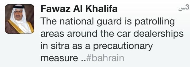 انزال الحرس الوطني في شوارع سترة انزال الحرس الوطني في شوارع سترة ورئيس هيئة شؤون الاعلام يتذرع بأنها لحماية وكالات السيارات ( خايفين من دبابات الستاروة يمكن؟) https://pbs.twimg.com/media/A7VsLoUCIAAcme2.jpg:large |