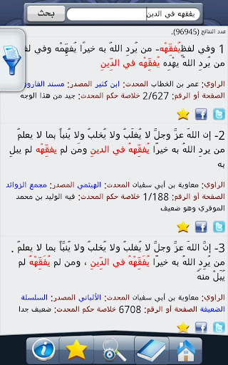 تطبيق موسوعة الحديث http://dc03.arabsh.com/i/01883/04u1oa29x498.gif تطبيق شامل لموسوعة الحديث يحوي جميع الإمكانات والمميزات الموجودة على الموسوعة الحديثية لموقع الدرر السنية، مع إمكانية البحث في أحاديث صحيحي البخاري ومسلم دون الحاجة إلى اتصال بالإنترنت. وهذا التطبيق هو التطبيق الرسمي الوحيد الصادر عن مؤسسة الدرر السنية للموسوعة الحديثية. https://lh4.ggpht.com/ZyvxKJMfDer30L...owYUTY7-QkoOGs https://lh4.ggpht.com/jCMt-ckqTW0a3G...fFcF3YLMV2Y34c https://lh4.ggpht.com/yt-EyN5F64Nmch...i9ubCy0ulcS_c4 الرابط المباشر لمن لايملك ماركت http://dl.dropbox.com/u/103906805/com.zad.hadith-1.apk |