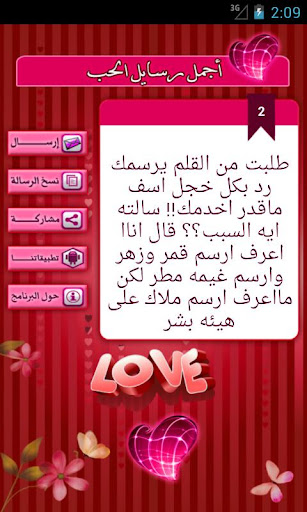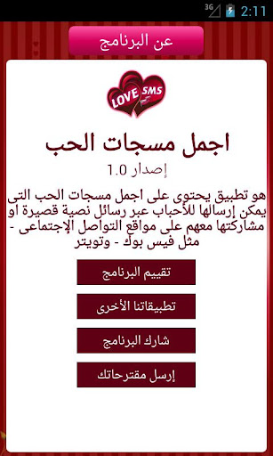 تطبيق مسجات الحب والرومانسية للعشاق جامد جدا وصف التطبيق تطبيق يحتوى على اجمل مسجات الحب التى يمكن إرسالها للأحباب عبر رسائل نصية قصيرة او مشاركتها معهم على مواقع التواصل الإجتماعى - مثل فيس بوك - وتويتر بالاضافة الى التصميم الانيق الذى يتوائم مع الموضوع والتحديث المستمر والتجدد للرسائل للنصية ارجو ان ينالى اعجابكم صور من التطبيق https://lh4.ggpht.com/dueSTe2peN3fBW...6nXl79rjw=w124 https://lh3.ggpht.com/6ZzZ2JEDjrH4zQ...2jMSeVtHY=w705 https://lh5.ggpht.com/kih8OT7zA_sZqx...fJlen1y27oEXDE https://lh6.ggpht.com/Qd56sPrf4ykYQ5...MNeNd3madILiUA https://lh5.ggpht.com/pxM3Ztjy0fHxmN...LSw-LYeY8wcALO https://lh3.ggpht.com/nLX9chRBZy_ljx...HSy2uot_o730_g |