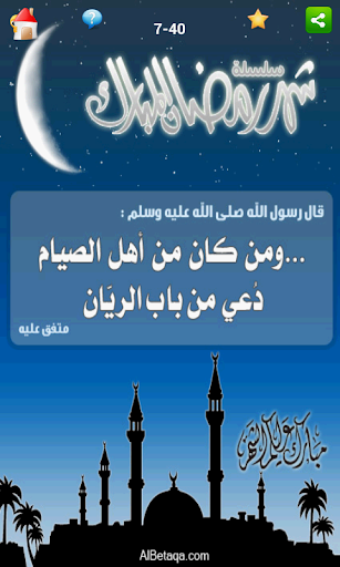 مجموعة متنوعة من الأحاديث الشريفة المتعلقة بشهر رمضان المبارك. بسم الله الرحمن الرحيم مجموعة متنوعة من الأحاديث الشريفة المتعلقة بشهر رمضان المبارك. شهر رمضان هو الشهر التاسع في التقويم الهجري ياتي بعد شهر شعبان . ويعتبر هذا الشهر مميزا عند المسلمين عن باقي شهور السنة الهجرية. فهو شهر الصوم، يمتنع في أيامه المسلمون عن الشراب والطعام والجماع من الفجر وحتى غروب الشمس. كما أن لشهر رمضان مكانة خاصة في تراث وتاريخ المسلمين ؛ لأنهم يؤمنون أن بدأ الوحي وأول ما نزل من القرآن على النبي محمد بن عبد الله كان في ليلة القدر من هذا الشهر في عام 610 م،حيث كان رسول الله في غار حراء عندما جاء إليه الملك جبريل، وقال له "اقرأ باسم ربك الذي خلق" وكانت هذه هي الآية الأولى التي نزلت من القرآن، والقرآن أنزل من اللوح المحفوظ ليلة القدر جملة واحدة، فوضع في بيت العزة في سماء الدنيا في رمضان، ثم كان جبريل ينزل به مجزئا في الأوامر والنواهي والأسباب، وذلك في ثلاث وعشرين سنة. يرجى وضع تقييم للبرنامج لا تنسونا من الدعاء الصاح رابط التحميل https://lh4.ggpht.com/3E5cTYVOdKVrrv...hMQ8zP-nykpWqY https://lh4.ggpht.com/CuHt1fgTTwnkH-...dTdD30D1oq74lw https://lh5.ggpht.com/nkOTPpp_2Ura7m...q_mf5GdPpIk_Mg |