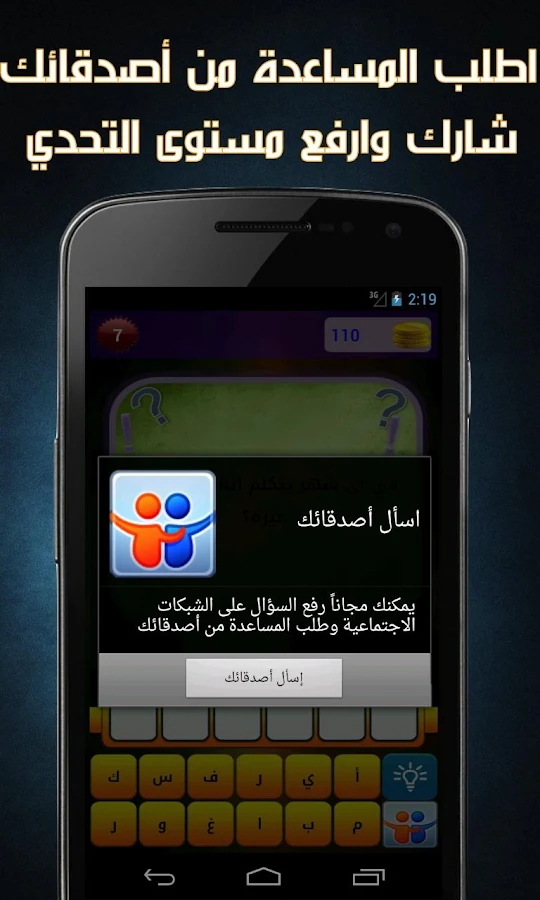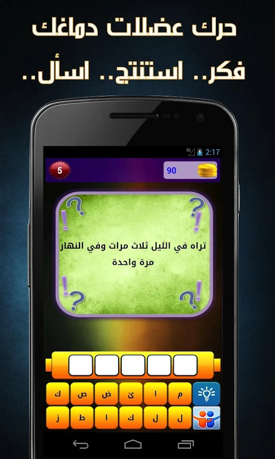 [ برنامـج ] : تطبيق لغز وكلمة واحدة الشيق هل تستطيع أن تحزر حل اللغز ؟؟ لعبة شبيهة بلعبة كلمة وأربع صور ولكن هنا ستحل الألغاز بدل الصور.. ألغاز وحزازير متنوعة ستتختبر ذكائك..ثقافتك..ومعلوماتك العامة.. ألغاز ذكاء.. ألغاز لغوية.. ألغاز من الثقافة العربية.. ألغاز رياضية.. ألغاز شعرية.. وألغاز دينية وقرآنية.. حرك عضلات دماغك.. اختبر ذكائك.. العب مع أصدقائك وانظر من هو الأذكى؟؟ حققت النسخة الانكليزية نجاحاً واسعاً والآن تأتيكم باللغة العربية.. ★ لعبة تناسب جميع الأعمار ★ ★ مستويات عديدة يتم تحديثها دورياً ★ ★ تدرج في الصعوبة كلما تقدمت في المراحل ★ ★ كلمات عربية فصحى تناسب الثقافة العربية والإسلامية ★ ★ إطلب المساعدة واكشف حرفاً أو قم بحذف الحروف الخاطئة ★ ★ كما يمكنك طلب المساعدة من أصدقائك عبر الفيسبوك و شبكات التواصل الإجتماعي ★ يمكنك طلب المساعدة عبر شبكات التواصل الإجتماعي فيسبوك، تويتر، واتس أب، فايبر وغيرها شارك المتعة مع أصدقائك وارفع مستوى التحدي.. https://lh5.ggpht.com/eNyHE9bxT4RvWa...EQ5FWg=h900-rw https://lh3.ggpht.com/L8EazfIXVh4BEQ...V7iFuQ=h900-rw https://lh3.ggpht.com/t3uNaqGEMnMnLs...wFhi_w=h900-rw تحمــــــــــــــــــيل البرنــــــــــــامج |