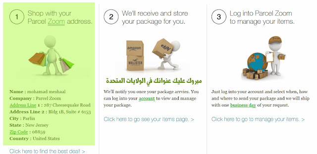 [ شرح ] موقع parcelzoom للحصول على عنوان في الولايات المتحدة شرح لطريقة الحصول على عنوان في الولايات المتحدة الامريكية لاستلام البريد وشراء من موقع ebay.com وموقع amazon.com والعديد من المواقع واستلام الشيكات الامريكية وتفعيل الباي بال وارسال البن كون من المواقع التي تدعم فقط الولايات المتحدة . اليوم ومع الموقع الذي يقدم الخدمة مجانا parcelzoom.com مميزات هذا الموقع ( يدعم كل الدول العربية , ارسال بالبريد السريع Fedex و DHL ) شرح التسجيل في parcelzoom والحصول على عنوان ثم نقوم بملئ البيانات بما هو مطلوب ( موضح بالصورة ) http://2.bp.blogspot.com/-mMZPePCk9t...A7%D9%86-4.jpg بعدما انتهينا من ملئ البيانات بالشكل الصحيح - ملاحظة : يجب ان يكون عنوانك صحيح 100% لكي لا تواجهة مشاكل في استلام الاغراض لبلدك لاحقا . نضغط الان على Sumbit سوف يقوم الان الموقع بارسال رسالة للبريد الذي سجلنا فيه تحوي رابط لتفعيل الحساب ومعلومات تسجيل الدخول نذهب الى البريد http://4.bp.blogspot.com/-CXiMRCAWpz...A7%D9%86-6.jpg هذه هي الرسالة : نضغط على الرابط http://1.bp.blogspot.com/-SKlbHvqf2q...9%8A%D9%8A.jpg وتظهرلنا رسالة تفيد بأن التسجيل تم بنجاح http://2.bp.blogspot.com/-hCHHLBzefZ...A7%D9%86-9.jpg ومبروك عليك الحصول على عنوان في الولايات المتحدة الامريكية http://1.bp.blogspot.com/-XEGGmt_Bsg...7%D9%86-11.jpg والموقع ايضا فيه العديد من الميزات منها تتبع البريد وسوف نشرح الموقع بالتفصيل في الدروس القادمة |