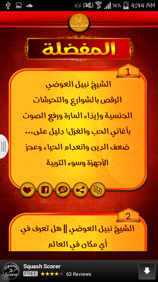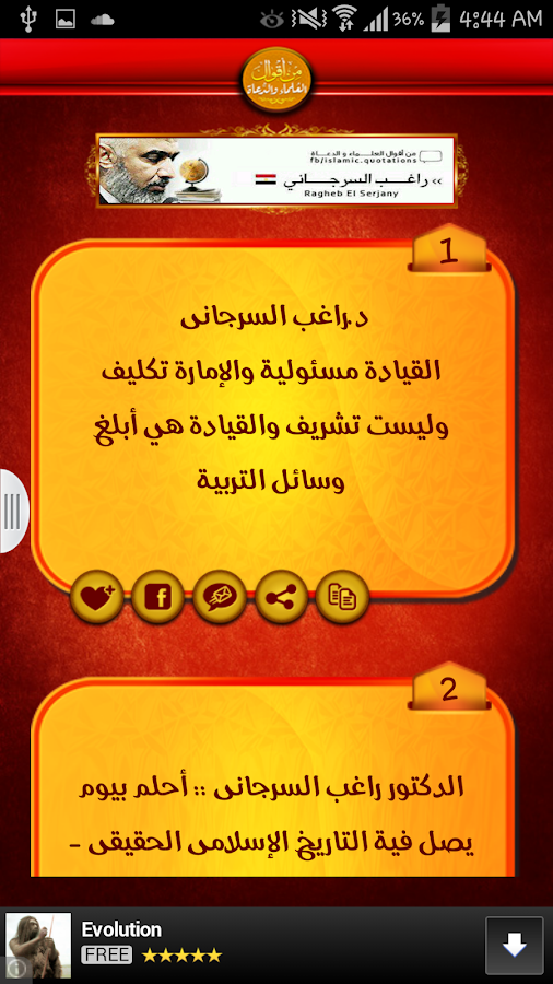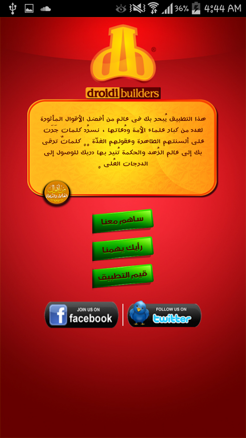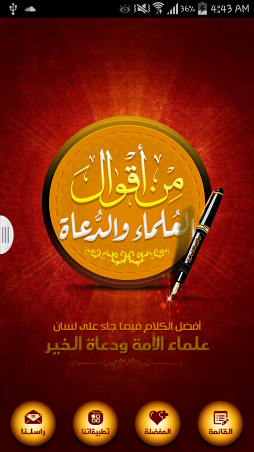 افضل تطبيق لأقوال العلماء والدعاة متجدد بإستمرار نبذة مختصرة عن التطلبيق هذا التطبيق يُبحر بك فى عالم من أفضل الأقوال المأثورة لعدد من كبار علماء الأمة ودُعاتها ، نسرُد كلمات جَرَت على ألسنتهم الطاهرة وعقولهم الفذّة .. كلماتٌ ترقى بك إلى عالم الزُهد والحكمة تُنير بها دربك للوصول إلى الدرجات العُلى لقطات من داخل التطبيق https://lh4.ggpht.com/Vl2uZc96GK1uhB...mQouOg=w300-rw https://lh6.ggpht.com/VDggmkdIA_FER7...5EFlek=h900-rw https://lh4.ggpht.com/_8oytrAHKli8Ai...5-NdZ1=h900-rw https://lh4.ggpht.com/owWXfMrLkgSvQb...FksgyQ=h900-rw https://lh6.ggpht.com/7OC_RF9ZQMO3wR...6sSP3u=h900-rw https://lh4.ggpht.com/_xBqoh9pUUnTln...zEeYBM=h900-rw تحميل التطبيق من الماركت https://play.google.com/store/apps/d...ers.aqual_doaa |