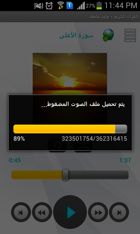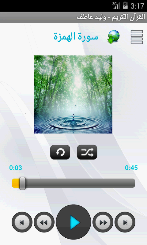 برنامج القرآن الكريم بصوت الشيخ وليد عاطف فى حلتة الجديدة السلام عليكم و رحمة الله و بركاتة النسخة الحديثة تحتوي على مميزات رائعة لمن لا يعرف صوت الشيخ يمكن سماع تلاوتة من هنا http://www.safeshare.tv/w/xxpuAONHDu رابط البرنامج على جوجل بلاي https://play.google.com/store/apps/d...n.sound.waleed صور البرنامج https://lh3.ggpht.com/-mMzZ1EnXcKK8-...9tXQf15vU=h900 https://lh3.ggpht.com/lNkezZ5g7gqvwq...EkvHqcu5k=h900 https://lh6.ggpht.com/WGFkM4b7iE_4Hj...LuevOcTPf=h900 |