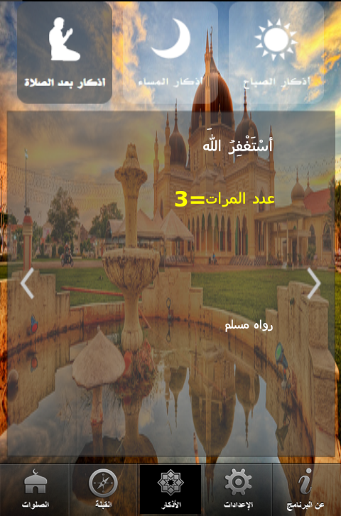 أفضل تطبيقات الصلاة ،الأذكاروالقبلة أفضل تطبيقات الصلاة ،الأذكاروالقبلة تطبيق "آذان" المجاني للأندرويد https://lh4.ggpht.com/IARo9M04W-aDwZ...vYEljP=w300-rw تطبيق آذان للاندرويد المجاني من أفضل تطبيقات التذكير بأوقات الصلاة المتاحة الآن علي جميع أسواق تطبيقات الأندرويد، فهو تطبيق مميز من حيث الإمكانيات وأيضًا الشكل، وفيما يلي سنعرض بعض مميزات التطبيق مع شرحها للتوضيح: الشاشة الرئيسية للتطبيق تتميز بشكلها الجميل حيث أنها في حالة إتصال التطبيق بالأنترنت تعرض صور مساجد من المدينة التي تعيش فيها، أما في حالة عدم الإتصال بالأنترنت ستتحول الشاشة الرئيسية لعرض صور سحب تتحرك وتتغير حسب كل توقيت وآذان ما بين : الصبح – الظهر – العصر – المغرب والعشاء بشكل بسيط وغير مزعج، كما يتم توضيح أسم المدينة الخاصة بك علي الشاشة الرئيسية وذلك بالتأكيد بعد اختيارك لها من صفحة الإعدادات، وتحتوي أيضًا علي عرض لشكل مواقيت الصلاة مع إبراز شكل ولون الصلاة القادمة وتمييزها عن الصلوات الباقية. وبما أن هدف التطبيق الأساسي هو التنبيه والتذكير بمواقيت الصلاة فقد قدم تطبيق آذان مجموعة ميزات تخدم ذلك منها : تنبيه المستخدم بالوقت المتبقي علي الصلاة القادمة من خلال عداد موجود في الشاشة الرئيسية للتطبيق، يمكن المستخدم من اختيار صوت الآذان عند تنبيهه به ما بين صوت الآذان المكي – المدني أو الأقصي، وأيضًا اختيار وضع الصامت أثناء الصلاة، كما ينبهك التطبيق لأداء صلاة الفجر بصوت آذان مختلف وذلك كان حسب رغبة بعض مستخدمي التطبيق، وبالنسبة لقيام الليل يخيرك التطبيق ما بين ثلاث أوقات للتنبيه إما الثلث الأول، الثاني أو الأخير من الليل، ولا ينسي تنبيهك للتبكير لصلاة الجمعة والاختيار ما بين التنبيه قبلها بساعة واحدة – ساعتين أو ثلاث ساعات حسب رغبتك. لا ينسي تطبيق آذان إعطاء الأذكار اليومية حقها في الأهتمام وتقديمها لمستخدميه بشكل بسيط وسهل الاستخدام حيث يمكنك من اختيار توقيت ظهور أذكار الصباح والمساء في الوقت الذي تحدده بنفسك، بالإضافة إلي أذكار الصلاة التي تظهر لك بشكل أوتوماتيكي بعد كل صلاة بعدد دقائق معينة، يمكنك التنقل بين كل ذكر وآخر بلمسة واحدة إلي اليمين أو اليسار، كل ذكر من هذه الأذكار في التطبيق يشمل عدد مرات التكرار وراوي الحديث، يمكنك من خلال شاشة الإعدادات بالتطبيق من اختيار حجم الخط المريح لعينك أثناء قراءة الأذكار. من أهم المميزات أيضًا بالتطبيق إحتوائه علي قِبلة صحيحة لتحديد الأماكن الصحيحة للصلاة أينما كنت، خاصية الجي بي إس والتي من خلالها تستطيع تحديد مكانك بأمان وقد قمنا حديثًا بإضافة ميزة جديدة بها وهي إمكانية إضافة موقع داخلها وذلك تم تحديثه في النسخة الجديدة من التطبيق وكانت رغبة الكثير من المستخدمين، أيضًا الويدجيت الموجودة في خلفية الهاتف والتي تعرض مواقيت جميع صلوات اليوم بشكل مبسط. هذه الفقرة في غاية الأهمية حيث إنها تحل أكبر مشكلة تواجه أغلب مستخدمي التطبيق ألا وهي ضرورة التأكد من ضبط كل من : - طريقة الحساب حسب مدينة كل مستخدم. - إغلاق أو فتح خاصية التوقيت الصيفي. - اختيار المذهب المناسب ما بين الشافعي أو الحنفي. كل هذه الإعدادات لابد من التأكد من ضبطها حسب مدينتك ضمانًا للحصول علي مواقيت صحيحة لكل الصلوات. حمل التطبيق مجانًا من هنا آذان https://lh4.ggpht.com/XrAYLgqxawO4kV...Dy6yCs=h900-rw https://lh4.ggpht.com/Lm7r0zvCaTeAa-...owaVcw=h900-rw https://lh3.ggpht.com/QC1jixVH705m20...eXbWfg=h900-rw https://lh3.ggpht.com/voh2ad1j6hCD1f...8WZF6M=h900-rw https://lh5.ggpht.com/UasLOpY6ap5Rg7...QTt7hM=h900-rw https://lh3.ggpht.com/stpv6yTlGeLCCV...y7ATzn=h900-rw https://lh5.ggpht.com/Wr8LYzJw-rwVLU...mvaevw=h900-rw https://lh6.ggpht.com/zww-M11kI2D5Yd...4W0-F4=h900-rw |