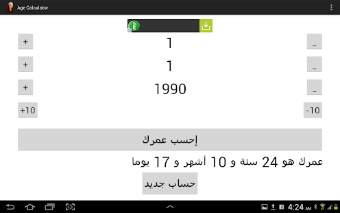 حساب العمر من تاريخ الميلاد https://lh3.ggpht.com/gsF5MD787fUkvl...d47ZXgOjQ=w300 https://lh6.ggpht.com/BsYwNP4dZtrxeq...cpuK5G1ep=h310 تطبيق يقوم بحساب عمرك بدقة عن طريق تاريخ ميلادك ..... المميزات: يقوم بحساب العمر بحسب التاريخ الحالي لليوم يحسب العمر بالسنين و الشهور و الأيام يمنع حدوث الأخطاء عند إدخال تاريخ تاريخ خاطئ يقوم بحساب فعلي حسب عدد أيام كل شهر لا يهمل اليوم الزائد في السنة الشمسية الكبيسة 366 يوم https://play.google.com/store/apps/d....agecalculator |