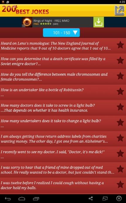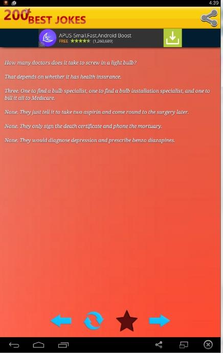 ◄ للترفيه : تطبيق لأفضل 200 نكتة بالإنجليزية " Best 200 Jokes "► أحبابنا الأعزاء أسعد الله أوقاتكم بكل خير وجعل الابتسامة أسيرةوجوهكم بعد بهجة القلب اللهم أميناهلا ومرحبا بكم في منتدىAndroidمسرورين بزيارتكم http://im56.gulfup.com/tBeRk.pngاليوم إن شاء الله أريد ان اقدم لكم تطبيق أفضل 200 نكتة بالإنجليزية تم تنزيلها على متجر جوجل بلاي مؤخراً وهي مجانية طبعاً ! إسم التطبيق:Best 200 Jokes حجم التطبيق :1,1Mرآبط تنزيل التطبيق من المتجر مباشرة : بعض الصور من التطبيق : https://lh6.ggpht.com/l_Nn7ezzU1LV1I...ysaFOGjAQ=h900 https://lh6.ggpht.com/QNDbcxeqrUAsE8...HU4jfZsQw=h900 http://img4.hostingpics.net/pics/822523352.png أدعكم تكتشفون باقي مميزات اللعبة بأنفسكـم http://im56.gulfup.com/tBeRk.png |