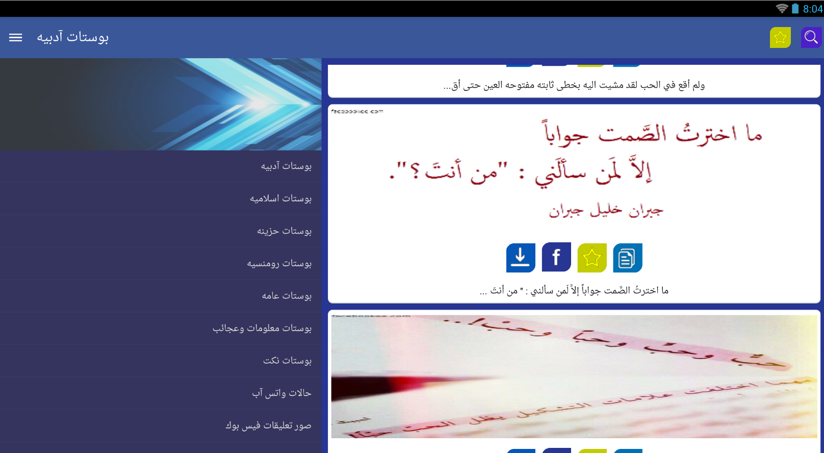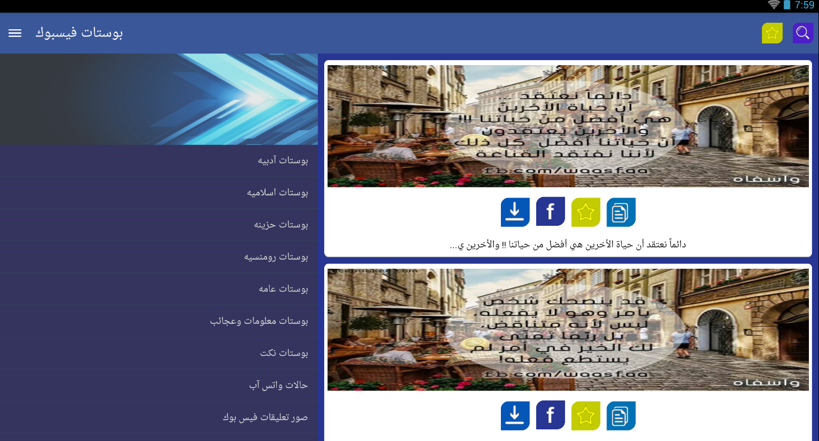 بوستات فيس بوك بسم الله الرحمن الرحيم تطبيق بوستات فيس بوك يتحوي على بوستات ( منشورات ) جاهزه في الفيس بوك بحيث يوجد الصوره والنص يمكنك مشاركات هذه البوستات مع الفيس بوك بشكل مباشر ، بالأضافه اذا كنت لا اريد مشاركتها على الفيس بوك بأمكانك تحميل الصوره بشكل مباشر وبأمكانك نسخ النص بالكامل .. واضافة الصوره التي تريدها الى المفضله .. التطبيق يحتوي على اقسام عديده : ★ بوستات اسلاميه ★ ★ بوستات عامه ★ ★ بوستات نكت ★ ★ بوستات رومنسيه ★ ★ بوستات معلومات وغرائب ★ ايضاً يحتوي التطبيق على قسم لـ ★ صور تعليقات الفيس بوك ( الكومنتات ) ★ ولـ ★★★ حالات الواتس اب ★★★ ولا تنسى أنه بأمكانك البحث عن البوست الذي تريده في الأعلى https://lh6.ggpht.com/Ds2PnT0y-EAY3p...m60kMA=h900-rw https://lh3.ggpht.com/YbImEITTRjj3Uv...id0Awo=h900-rw لتحميل التطبيق خلال جوجل بلاي .. ~ https://play.google.com/store/apps/d...ith.gaithposts |