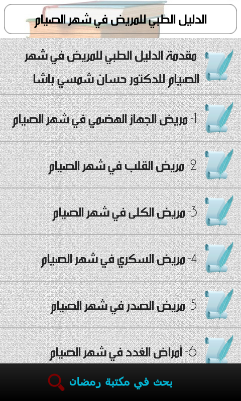 برنامج مكتبة رمضان الإسلامية https://lh6.ggpht.com/KRCig5r2CtUHty...0AkJvC6Q4=w300 مكتبة رمضان الإسلامية الشاملة هي مكتبة متكاملة تحتوي على مجموعة من الكتب التي لا غنى عنها للمسلم في أيام رمضان يمكن البحث في محتويات المكتبة بطريقة مباشرة وسهلة يمكنك حفظ الصفحات التي تريدها في المفضلة حتى يمكنك الرجوع إليها مباشرة يمكنك تعديل لون ونوع الخط كما يمكنك تغيير خلفية القراءة https://lh3.ggpht.com/7iYJaQMXL1t3HZ...9Wmg-ZRuE=h900 https://lh4.ggpht.com/ysYCoW9t-KV61v...-GIqt4eWY=h900 https://play.google.com/store/apps/d...amadan.library |