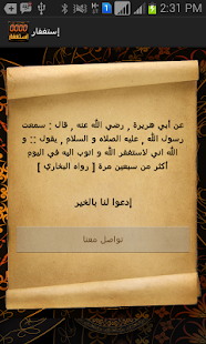 تطبيق إستغفار يساعدك في حساب عدد مرات الإستغفار https://lh3.ggpht.com/8wYMOnWL3_lwQU...ama-gxvRg=w300 عن البرنامج برنامج إستغفار هو عبارة عن برنامج صغير جدا يساعدك في حساب عدد مرات الإستغفار بالإضافة إلى التذكير بالإستغفار كل ساعة أو على حسب الرغبة. هذا البرنامج بنسخته الأولى يقدم العون لكل من يحب أن يكون على إتصال دائم بالله سبحانه وتعالى عن طريق الإستغفار. عن أبي هريرة, قال : سمعت رسول الله صلى الله عليه وسلم يقول ::”و الله إني لأستغفر الله و أتوب إليه في اليوم أكثر من سبعين مرة” [ رواه البخاري ] الجديد في البرنامج - تعديل مشكلة التنبيه بالإستغفار - إضافة سجل بعدد مرات الإستغفار بشكل يومي أو شهري أو سنوي - إضافة أذكار نصية كل يومين للتذكير - إضافة أصوات تنبيه أخرى للتذكير في النهاية نسأل الله أن يتقبل منا هذا العمل خالصا لوجهه الكريم، ولا تبخل علينا أخي الكريم بالدعاء لنا الصور : https://lh4.ggpht.com/jpsDmJVYz1zQaH...b3TsFrtow=h310https://lh5.ggpht.com/qUhDeT7Vz2TAJd...ltkIMkKr0=h310 جوجل بلاي https://play.google.com/store/apps/d...y.test.counter رابط التحميل http://apksharing.com/file/1450484334_SKqiCd |
