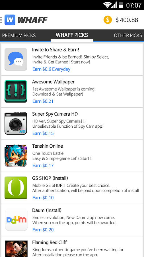 Whaff.- Make Money Easy (Android http://screenshots.fr.sftcdn.net/blo...13-568x480.png En la sociedad actual nos movemos por el dinero. Situamos el dinero prácticamente por encima de todo, creyéndonos que nos aporta la felicidad, aunque no sea verdad. El marketing actual conoce esta tendencia y le saca provecho con interesantes ofertas de rebajas, con precios muy bajos. Pero, hasta ahora, no se había visto algo parecido. Una app que te paga por no hacer nada. Se trata de Whaff, disponible para Android. Con esta aplicación puedes ganar todo el dinero que quieras instalando apps y viendo vídeos. También te dan dinero por mantener esas apps instaladas. Además los métodos de pago son muy diversos: PayPal, Facebook, Google Play, Xbox, Amazon y Steam. Hay que tener en cuenta que el importe mínimo a retirar siempre deben ser 10$, equivalente en euros a unos 7,27€. http://screenshots.fr.sftcdn.net/blo...13-568x480.png http://screenshots.fr.sftcdn.net/blo...23-568x480.png http://screenshots.fr.sftcdn.net/blo...23-568x480.png http://screenshots.fr.sftcdn.net/blo...51-568x480.png La app se encuentra en Play Store y su descarga es totalmente gratuita. El primer requisito al abrir la app es que iniciemos sesión en nuestra cuenta de Facebook y unos datos personales y, si introducimos el código de otra persona con la app, se nos sumarán 0,30$. Este es el codigo:AA04968. Descarga de play store: https://play.google.com/store/apps/d...whaffapp&hl=es En la pantalla principal podemos visualizar pestañas deslizables en las que aparecen las ofertas. En la central y principal encontramos las ofertas premium, que son las que más nos van a pagar. En cada una de ellas podemos ver que nos pagan por su uso diario y por mantenerla instalada. En la pestaña "Whaff Picks" podremos invitar a través de Facebook a nuestros amigos, lo cual nos da 0,01$ por cada amigo invitado. http://lh5.ggpht.com/DHDIS2tsq-y9okX...5uPJLGIXk=h900 En "Other Picks" podemos visualizar vídeos, de unos 15 segundos de duración, por los que también nos dan 0,01$. Puede haber gente que dude de la veracidad de este servicio, pero los usuarios de Play Store apoyan la app, ya que cuenta con una valoración de 4,5/5 y más de un millón de descargas. Por si fuera poco, también he podido comprobar personalmente que se realizan los pagos de una forma rápida, con un solo día de espera. |