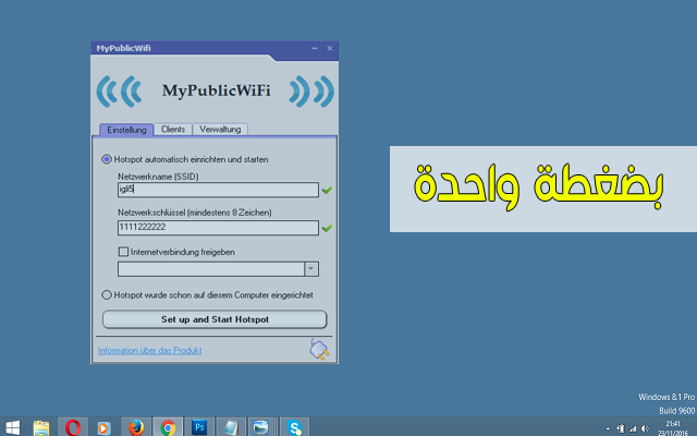 تعرف على أصغر برنامج يحول حاسوبك إلى موزع للأنترنت ويتيح لك التجسس أنت على المتصلين ب <div>MyPublicWiFi هو واحد من الخيارات الأخرى المفضلة لتحويل حاسوبك إلى موزع للأنترنت بخطوات بسيطة وسريعة ، فهذا البرنامج يكفي أن تضع عليه إسم معين للشبكة ثم وضع كلمة سر خاصة بها وبضغة واحدة تكون قد حولت حاسوبك إلى موزع للأنترنت ، كما أنه يتوفر على خصائص أخرى مميزة كمعرفة عدد المتصلين بالشبكة التي وضعتها ، ثم إمكانية قطع الإتصال على أي شخص تريده ، كما يتميز بحماية كبيرة حيث يقدم خدمة الجدار الناري الذي يمنع المستخدمين التجسس على بعضهما البعض باستثناء صاحب الشبكة الذي يمتلك هذه الصلاحية والذي هو أنت بطبيعة الحال حيث يمكنك التجسس على كل شخص إتصل بالشبكة التي أنشأتها. https://1.bp.blogspot.com/-wCZVdS9e0...%25D8%25A9.png البرنامج مجاني ويمكنك تحميله عبر الرابط التالي : لتحميل البرنامج اضغط هنا بعد تحميل البرنامج قم بتثبيته وسيطلب منك إعادة تشغيل الحاسوب وبعد ذلك إفتح البرنامج كمسؤول run as administrator ثم قم بوضع في الخانة الأولى إسم الشبكة وفي الخانة الثانية كلمة السر الخاصة بها وأخيرا إضغط على set up and start hotspot https://2.bp.blogspot.com/-RRvvURbmY...3_21-41-03.png هكذا ستظهر بعد بضعة ثواني الشبكة الجديدة على الأجهزة الأخرى ويمكنهم الإتصال بها ، وفي باقي أقسام البرنامج كقسم clients سيظهر لك عدد المتصلين بها ، ثم في القسم managment به بعض الإعدادات المهمة كتغيير اللغة وتفعيل firwell ...إلخ |