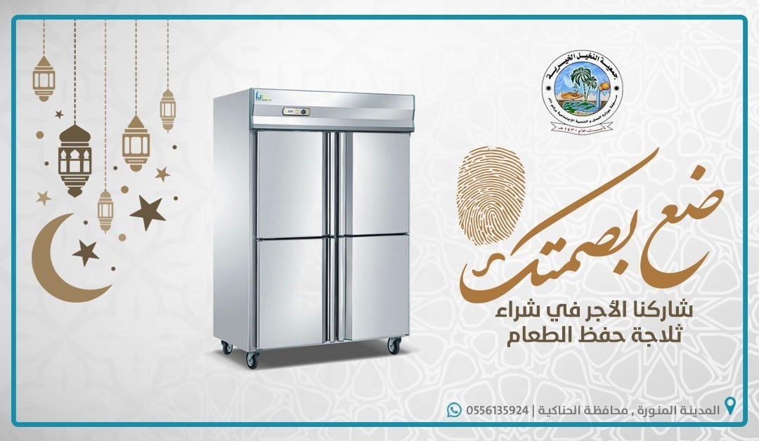 ضع بصمتك و ساهم معنا https://i.suar.me/AxMMB/l جمعية النخيل الخيرية تفتح لك باب الخير في شهر الخير تسعى الجمعية شراء ثلاجة حفظ الأطعمة ضع بصمتك و ساهم معنا بما تجود به نفسك . رقم الحساب بمصرف الراجحي SA1780000269608010177000 جـمـعـيــــة النـخـيــــل الخيـــريــة مسجلة بوزارة العمل والتنمية الإجتماعية برقم (521) جوال 0556135924 رقم الحساب بمصرف الراجحي SA1780000269608010177000 الموقع ط¬ظ…ط¹ظٹط© ط§ظ„ظ†ط®ظٹظ„ ط§ظ„ط®ظٹط±ظٹط© |