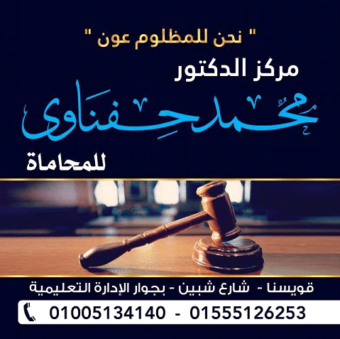 افضل مركز للاستشارات القانونية و المحاماة هل تبحث عن افضل مركز للاستشارات القانونية و المحاماة مركز الدكتور / محمد حفناوي للمحاماه شعارنا " نحن للمظلوم عون مهما يكن شأن الظالم " https://i.suar.me/rBKN7/l سواء كان لديك غموض بمسالة ما من حيث الاجراءات و المساطر و ما شابه و تبحث عن مستشار امين و ثقة ذو خبرة او عندك مشكل او قضية و ترغب بكسبها على يد افضل المحامين مع نخبة من أكفأ المحامين في التقاضي في مختلف القضايا القضايا الجنائية مهما كان حجمها ووصفها القضايا المدنية والتجارية بشتى أنواعها القضايا الإدارية مهما تكن تعقيداتها قضايا المواريث والأحوال الشخصية والأسرة القضايا خارج حدود الدول بكل انواعها نضع بين يدك خبرتنا العملية و العلمية من خلال احدث التشريعات المحلية و الدولية نسعد بالتواصل معكم والرد على استشاراتكم من داخل مصر وخارجها على الهاتف المحمول 01005134140 / 01555126253 [email protected] https://www.facebook.com/MOHAMEDHEFNAWY.DR https://twitter.com/mofed182 https://www.instagram.com/mohamedhefnawy.dr/ https://goo.gl/forms/cFIKhFcuvo3Wl2GE2 القاهرة - الدلتا - الإسكندرية |