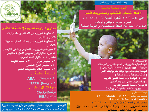ماجستير التخاطب و التوحد و صعوبات التعلم الماجستير المهنى فى التربية الخاصة المنحة الشاملة للماجستير التدريبى فى التربية الخاصة تبدأ الجمعة القادمة 13 – 7 - 2018 ... عملى و نظرى – مباشر و أونلاين على مدى 6 : 8 شهور مكثفة الجمعة و السبت من 10 ص : 3 م بتوقيت مصر ... حصريا من واحة التميز للتدريب ... أكثر من 16 دبلومة و دورة متخصصة فى برنامج واحد.. منها التخاطب و التوحد و صعوبات التعلم و غيرها الكثير لا يمكن مقارنته فى العمق و القوى و مستوى التدريب قوى جداااا بخبرات فوق 20 عاما ... توفر عليك وقت و مجهود و فلوس خصم خصم خصم 1000 ج للمصريين و 1000 ريال للإخوة العرب للحجز حتى الثلاثاء القادم 13 يوليو 2018 م لمزيد من التفاصيل و صور اعلانات الخمس منح مفصلة برجاء الضغط على الرابط التالى https://bit.ly/2MCW4lz رابط البيدج الرئيسى لمؤسسة واحـــــــة التمـــــيز للتـدريب لمتابعة أقوى منح مدعمة فى التربية الخاصة على مستوى الوطن العربى : mUTXD الموقع الالكترونى ظˆط§ط*ط© ط§ظ„طھظ…ظٹط² ظ„ظ„طھط¯ط±ظٹط¨ https://i.suar.me/rBwBJ/l المنحة الثانية : المنحة الشاملة للماجستير التدريبى فى العلاج الوظيفى البداية 27 / 7 / 2018 ... حصريا فى واحة التميز للتدريب 5 : 6 شهور مكثفة يوم أسبوعيا ... الأقوى فى الوطن العربى تدريب قمة فى التخصص و الرقى يفرق معاك كثيييير جداااا خصم خصم خصم 1000 ج للمصريين و 1000 ريال للإخوة العرب للحجز قبل 10 يوليو 2018 م https://i.suar.me/xyXyr/l المنحة الثالثة : أقوى منحة شاملة لإعداد أخصائى التخاطب و صعوبات التعلم الجمعة القادمة 13 يوليو 2018 م حصريا واحة التميز للتدريب 3 شهور 300 ساعة عملى و نظرى مباشر و أونلاين - عمالقة المتخصصين فى الوطن العربى بخبرات فوق 20 عاما إمكانية التقسيط حتى 3 أشهر خصم خصم خصم 1000 ج للمصريين و 1000 ريال للإخوة العرب للحجز حتى 10 يوليو 2018 م https://i.suar.me/w1Y13/l المنحة الرابعة المنحة الشاملة لإعداد معلمات منتسورى شهر و نصف الاثنين و الأربعاء من 3 : 7 م نظرى و عملى تدريب راقى 12 يوم على مدى 4 ساعات مميزة جداااا شهادات معتمدة 11 - 7 - 2018 م https://i.suar.me/gZwZw/l يمكن الحجز مباشر أو من خلال فودافون كاش أو بحوالة بريدية أو حوالة بنكية أو ويسترن يونيون و ارسال صورة المؤهل و صورة البطاقة و صورة شخصية و صورة التحويل على الواتساب على أحد الرقمين بالإعلان 00201141568171 - 00201016990017 متوفر واتس و فايبر و ايمو للتواصل و الحجز واحة التميز للتدريب : 00201141568171 - 00201016990017 متوفر واتس و فايبر و ايمو هاتف أرضى : 0233377306 العنوان : 2 شارع الزهراء الدقى بالقرب من مترو البحوث الجيزة - مصر |
