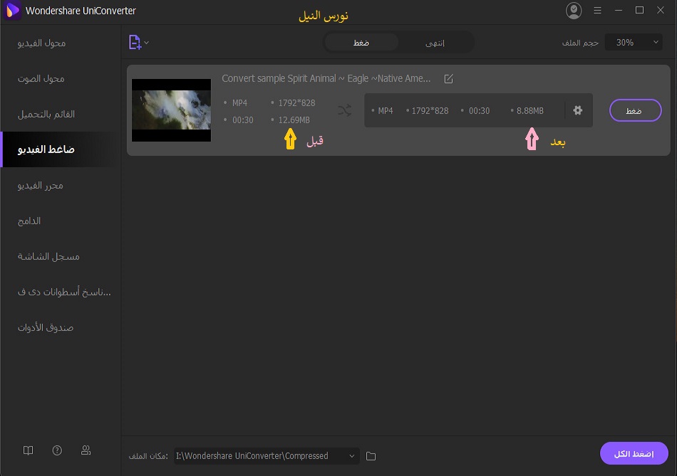 إضغط و ادمج وحول مقاطع الفيديو مع الساحر ( Wondershare UniConverter .12.0.2.6 ) <div> https://mrkzgulfup.com/uploads/159286986734068.gif بعد التحية و السلام على معاليكم موعدنا اليوم مع برنامج مميز جدا في تحرير مقاطع الفيديو وضغط مقاطع الفيديو دون فقدان جودة مقاطع الفيديو و دمج عدة مقاطع و الكثير من المميزات الرهيبة و الاهم من ذلك كله دعمه الكامل للغة العربية ( لكن وجب التنبيه النسخة فقط لنظام 64 بت ) otz: https://www.arabsharing.com/do.php?img=244564 في احدث إصدار له بتاريخ اليوم 2 \9\2020 Portable Wondershare UniConverter .12.0.2.6 https://mrkzgulfup.com/uploads/159752810898711.gif تطبيق مشهور ومعروف لا يحول أي نوع من مقاطع الفيديو فحسب ، بل يعمل على تحويل مقاطع الفيديو إلى تنسيقات أفلام ثلاثية الأبعاد و 4 K فائقة الدقة. على جعل الفيديو أكثر قابلية للتعديل والمرونة عن طريق تحويلها على الفور إلى WMV و MP4 و MKV و 3GP و FLV و MPG و AVI وما إلى ذلك https://mrkzgulfup.com/uploads/159752810898711.gif تم دمج التفعيل النظيف و تحويله الى نسخة محمولة و تمت التجربة بنجاح على الويندز الوهمي و على الويندز الاصلي كما ستشاهدون بالصور https://www.arabsharing.com/do.php?img=244558 اقبل الاتفاقية بالضغط على كلمة قبول https://www.arabsharing.com/do.php?img=244559 حدد ملف لفك الضغط https://www.arabsharing.com/do.php?img=244560 شغل من ايقونة تشغيل البرنامج https://www.arabsharing.com/do.php?img=244561 لتغيير اللغة لأي لغة تريدها https://www.arabsharing.com/do.php?img=244562 https://www.arabsharing.com/do.php?img=244563 معلومات عن النسخة و تفعيل البرنامج https://www.arabsharing.com/do.php?img=244565 https://mrkzgulfup.com/uploads/159752810898711.gif خصائص و قوائم البرنامج https://www.arabsharing.com/do.php?img=244568 https://www.arabsharing.com/do.php?img=244569 تجربة سريعة على ضغط ملف فيديو https://www.arabsharing.com/do.php?img=244572 و خيارت الضغط قبل اجراء عملية الضغط https://www.arabsharing.com/do.php?img=244577 تم التحويل بنجاح https://www.arabsharing.com/do.php?img=244573 هذا هو الملف بعد الضغط https://www.arabsharing.com/do.php?img=244574 فحص الفيروسات من جهازي https://www.arabsharing.com/do.php?img=244567 https://mrkzgulfup.com/uploads/159752810898711.gif حجم الملف حوالي 142 ميجا بايت و بعد فك الضغط حجم النسخة حوالي 450 ميجا بايت رابط التحميل https://mrkzgulfup.com/uploads/159286986717463.jpg https://www.arabsharing.com/do.php?id=244575 https://mrkzgulfup.com/uploads/15975281090473.gif و بالتوفيق للجميع https://mrkzgulfup.com/uploads/159752824502311.jpg |