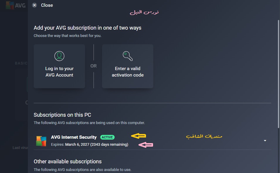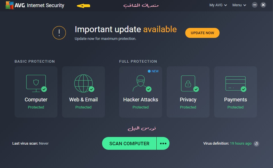 حصري للمشاغب العملاق (نسخة مفعلة حتى عام 2027 من برنامج Avg Internet Security 2020 ) <div> https://mrkzgulfup.com/uploads/159286986734068.gif بعد التحية و السلام على معاليكم يسعدني ان اقدم لكم نسخة كاملة مفعلة حتى عام 2027 https://i1.wp.com/www.cracksoftsite....53%2C353&ssl=1 من برنامج مكافح الفيروسات القوي Avg Internet Security 2020 https://mrkzgulfup.com/uploads/159752810898711.gif مميزات البرنامج ياتى برنامج AVG Internet Security بالعديد من المزايا التى جعلت منه محل ثقة المستخدمين لفترة طويلة والتى جعلته أيضاً ضمن التصنيف العالمى لأفضل برامج الحماية يوفر لك البرنامج حماية متكاملة بحق ويقوم بفحص كل ما يجرى على النظام حيث يقوم بتتبع وفحص صفحات الإنترنت التى تتصفحها والتأكد من أنها سليمة من التهديدات والبرامج الضارة كذلك يقوم بفصحص البريد الوارد وتحليل البرامج التى تقوم بتحميلها من مصادر غير موثوقة ليقوم بحمايتك من البرامج الخبيثة والملغومة التى قد تؤذى النظام برنامج 2020 AVG Internet Security يمتلك جدار حماية قوى جدا يعمل على حماية جهازك من جميع التهديدات الامنية وهجمات البرمجيات الخبيثة عند تصفح الانترنت أو عند إستخدام مختلف تطبيقات الكمبيوتر التي قمت بتنزيلها من شبكة الانترنت بحيث يعمل على فحص جميع البيانات والملفات الصادرة أو الواردة ا لى الكمبيوتر عبر الانترنت بالإضافة الى منع اي ملفات مشبوهة محتملة أو برمجيات خبيثة تحاول التسلل الى الكمبيوتر في الخفاء مما يمنحك الأمان والحماية من قراصنة الكمبيوتر ومن مواقع الانترنت الضارة برنامج 2020 AVG Internet Security يعمل بتناغم مع أقل الإمكانيات على عكس جميع برامج الأنتى فايروس لا يتطلب برنامج AVG عتاد قوى حيث أنه يعمل بنظام ذكى فلا يستهلك الكثير من الذاكرة أو المعالج فلن تشعر بإى تباطئ في النظام الخاص بك https://mrkzgulfup.com/uploads/159752810898711.gif شرح التنصيب و التفعيل بالصور محتويات الملف بعد فك الضغط https://www.arabsharing.com/do.php?img=248972 قم بتنصيب البرنامج عادي https://www.arabsharing.com/do.php?img=248964 و افتح الملف المرفق للدخول للوضع الآمن و شغل ملف SafeMode كمسؤول كما في الصورة otz: https://www.arabsharing.com/do.php?img=248970 و وافق على الدخول لوضع SafeMode https://www.arabsharing.com/do.php?img=248971 عند الدخول في هذا الوضع https://www.arabsharing.com/do.php?img=248965 اتبع المسار المطلوب ثم قم بحذف ملف license الموجود كود C:\ProgramData\AVG\Subscriptions otz: و الصق الملف license.avglic المرفق مكانه otz: و لتسهيل الامور على الاخوة الاعضاء مرفق مع الملف اختصار للدخول على الموقع مباشرة https://mrkzgulfup.com/uploads/159752810898711.gif ثم اعد تشغيل الجهاز otz: ستجد البرنامج كما في الصورة https://www.arabsharing.com/do.php?img=248968 و تابع معي الخطوة التالية https://www.arabsharing.com/do.php?img=248969 لتجد البرنامج مفعل حتى عام 2027 :zn: https://www.arabsharing.com/do.php?img=248966 و هذا رقم اصدار النسخة https://www.arabsharing.com/do.php?img=248967 و حدث قاعدة بيانات الفيروسات براحتك https://mrkzgulfup.com/uploads/159752810898711.gif فحص الفيروسات من جهازي https://www.arabsharing.com/do.php?img=248973 رابط التحميل حجم الملف حوالي 400 ميجا بايت https://mrkzgulfup.com/uploads/159286986717463.jpg https://www.arabsharing.com/do.php?id=248984 https://www.arabsharing.com/do.php?img=245909 نقطة نظام كلمة السر لفتح الملف فقط للأخوة الاعضاء عن طريق الرسائل الخاصة فقط otz: و عذرا من الاخوة الزوار نظرا لحصرية الموضوع و التعب الشديد في الحصول على هذه الرخصة و طريقة التفعيل و بالتوفيق للجميع https://mrkzgulfup.com/uploads/159752824502311.jpg |