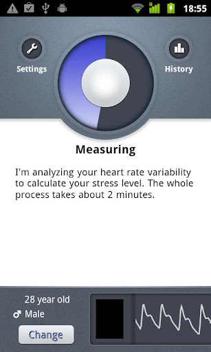 يعمل البرنامج على قياس نبضات قلبك عن طريق الكاميرا و ضوء الفلاش , ثم يقوم البرنامج باعطاء نتيجة الفحص حسب درجات معينة , يقوم بتحديد درجة توترك .