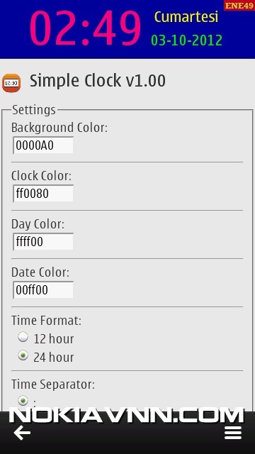d13 Simple Clock Widget ودجيت ساعة يمكنك التحكم بها d13 Simple Clock Widget 1.0 ساعة رائعة يمكنك التحكم بالوانها وطريقة عرض التاريخ http://1.bp.blogspot.com/-UxS-CzaHOm...VNN.COM+a1.jpghttp://4.bp.blogspot.com/-I3INcFSqBB...VNN.COM+a0.jpg وهذه اكواد الالوان التي تستطيع التغير بها Color codes: Red: FF0000 White: FFFFFF Turquoise: 00FFFF Light gray: C0C0C0 Blue: 0000FF Dark gray: 808 080 Dark blue: 0000A0 Black: 000000 Pink: FF0080 Orange: FFA500 Light red: 800 080 Light brown: A52A2A Yellow: FFFF00 Brown: 800000 Light green: 00FF00 Dark green: 008 000 Light pink: FF00FF Dark yellow: 808 000 التحميل http://www.mediafire.com/?429fypyjgpsdu12 اتمني ان تنال اعجابكم |