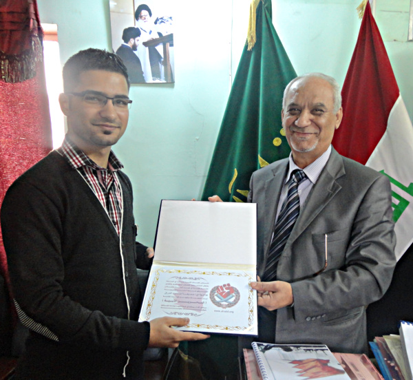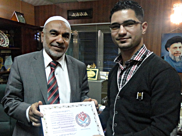 ![]() شبكة الراصد | بمناسبة بلوغ الثورة البحرينية عامها الثالث . أقامت شبكة الراصد البحرينية (إستخبارات الثورة) جولة تكريم لعدد من وسائل الإعلام المتضامنة مع الحِراك الثوري في البحرين . وقام وفدٌ يتقدمه المتحدث بأسم الشبكة السيد محمد الموسوي والأخ (فاروق) وعدد من الإعلاميين بزيارة عدد من الفضائيات والإذاعات والصحف في العاصمة العراقية بغداد . مقدمين لهم جزيل الشكر والإمتنان على متابعتهم المستمرة وتغطيتهم الفاعلة لمستجدات الساحة الثورية البحرينية ومؤكدين على ضرورة تقديم الثورة البحرينية بمطالبها الحقيقية . وأولها مطلب إسقاط النظام الخليفي بالكامل . ومؤكدين على لزوم تسليط الضوء على عمليات المقاومة والدفاع المقدس الواجب المستمرة في البحرين منذ أكثر من عام والتي تحاول بعض الأطراف المسالمة للنظام الخليفي الكافر إنكارها أو تحريفها وتسويفها في محاولة منها لتزييف الواقع . وأستعرض الأخ (فاروق) مجمل الأنجازات الأمنية والإستخباراتية والإعلامية لشبكة الراصد البحرينية منذ إنطلاقها منذ أكثر من عام ونصف للأخوة مسؤولي القنوات . الذين بدورهم أكدوا على إستمرار مؤسساتهم بمتابعة الشأن البحريني بتفاصيله حتى نيل الشعب لمطالبه من دون كلل أو ملل . وكما توجهوا بالشكر الجزيل للشبكة على هذه البادرة الطيبة . وزود المكرمين بكتيب (الحصاد الثوري في البحرين) والشامل على أحداث عام 2012 في البحرين والذي أعدته شبكة الراصد . وشملت الجولة الاولى تكريم كل من (قناة المسار,قناة المسار الاولى,قناة الكوثر,قناة بلادي,قناة الغدير,قناة الإتجاه,إذاعة طهران,صحيفة صوت العراق) ومن المقرر إقامة جولة تكريم ثانية في وقت أخر تشمل تكريم عدد أخر من وسائل الإعلام إضافة إلى شخصيات سياسية ودينية وإعلامية ![]() ![]()