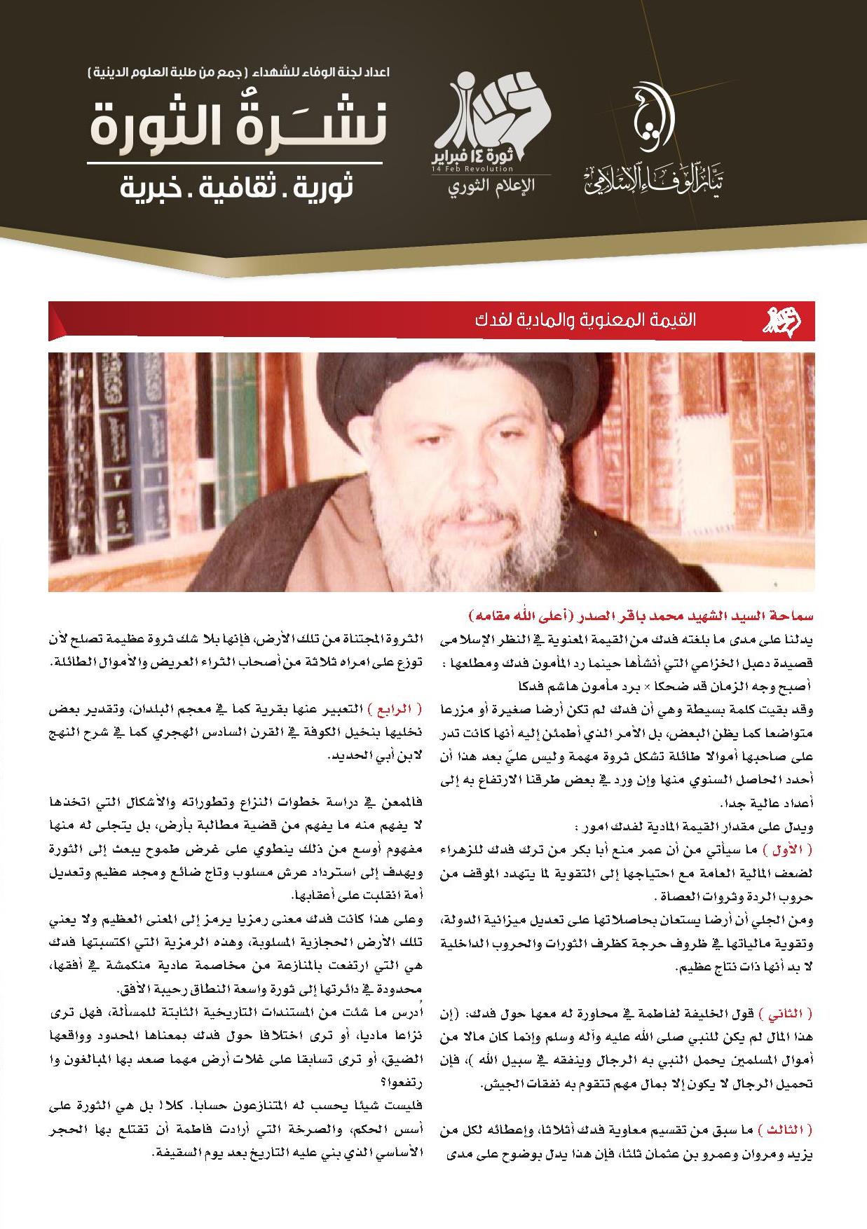 ..:: ( لجنة الوفاء للشهداء) ::.. نشرة الثورة :: العدد47 الصفحة الاولى: - الأستاذ عبدالوهاب: الانتصار الحتمي بيد المؤمنين. - الامام الخامنئي: التأسي بالسيدة الزهراء ( عليها السلام ). http://bit.ly/Z3llYr ![]() ![]() الصفحة الرابعة: - الشيخ مصباح اليزدي: فدك ذريعة لبيان الحق. - سلام العاشقين. - نافذة فقهيه من كتاب تحرير الوسيلة للامام الخميني. http://bit.ly/WGYEJI ![]() لتحميل النشرة: 4shared: ساهم بنشر الفكر الثوري الأصيل وأرسلها |