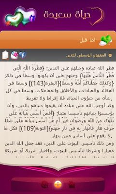 بسم الله الرحمن الرحيم تم وضع فكرة تطبيق زواج سبع نجوم بحيث يلامس احتياجات الزوجين النفسية والاجتماعية بأسلوب عصري وحديث يجمع بين القيمة المعرفية الموثوقة، والتقنيات الحديثة، فيقدم مادة معرفية توجيهية للمقبلين على الزواج خاصة، تسهم في بناء تصور صحيح عن الحياة المقبلة، وتعطيها قدراً من الواقعية، كما يساهم في وضوح طبيعة العلاقة الناجحة بين الزوجين ، مع بعض التوجيهات عند حصول المشاكل، و الأفكار التي تسهم في تجديد هذه الحياة.وقد شارك في إعداد محتوى التطبيق نخبة من المختصين والمستشارين الأسريين والنفسيين والشرعيين والتقنيين، عبر مجموعة من ورش العمل التي صاحبت إعداد فكرة التطبيق ومحتواه، ليخرج على أتم صورة وأبهى حلة. أهداف التطبيق: •السعي لنشر المفاهيم الصحيحة والآداب الإسلامية اللازمة لوضع اللبنة الأساسية للبيت المسلم السعيد. •تعليم المقبلين على الزواج الأحكام الشرعية اللازمة للحياة الزوجية. •إيجاد أداة عملية لإبراز الجوانب الإيجابية في الحياة الزوجية لكلا الطرفين. •تغليب النظرة الإيجابية المشرقة للزواج. •إيجاد أدوات للخروج من الأجواء الروتينية للحياة الزوجية. •طرح وسائل لتنمية الحب والاحترام المتبادل بين الزوجين. •تقديم نصائح لتجاوز المشكلات والعقبات التي قد تكدر الحياة الزوجية. •نشر هذه المفاهيم لدى أكبر عدد من المستفيدين بتوفير البرنامج مجاناً في متاجر التطبيقات. •نشر عناوين الجهات التي تعمل في التوجيه والإرشاد الأسري صور البرنامج ![]() ![]() ![]() ![]() ![]() ![]() تحميل البرنامج |