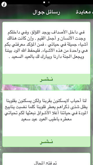 لم يتبق على عيد الفطر المبارك سوى يومان أو يوم واحد، و بدأ الناس فعلياً بتبادل و تناقل رسائل التهاني و التبريكات لعيد الفطر المبارك وأصبح البحث عن مصدر لرسائل التهاني أو بطاقات المعايدة صعب قليلاً و يحتاج لمجهود و كذلك هناك تطبيقات توفر بطاقات تهنئة و معايدة ولكن سعرها مبالغ فيه حقاً! لذا فنحن اليوم قد انتقينا لكم تطبيق تهاني جديد و مميز وصل حديثاً لمتجر التطبيقات ليوفر مصدراً مميزاً لرسائل العيد و بطاقات التهاني له؛ فكل ما عليك هو الدخول للتطبيق و اختيار رسالة مناسبة من باقات الرسائل الموجودة و كذلك اختيار بطاقات معايدة مصممة مسبقاً و نشرها عبر الشبكات الاجتماعية أو البريد و كذلك حفظها وارسالها لمعارفك عبر تطبيقات التواصل و كل ذلك بشكل مجاني بالكامل