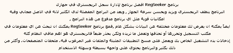 | الاداة الرائعه RegSeeker 2.55 Portable لتسريع الجهاز عن طريق إدارة وتنظيف الريجسترى | محروم.كوم | منتدى أخبار المواقع والمنتديات العربية والأجنبية | 0 | 08-06-2013 02:50 AM |
