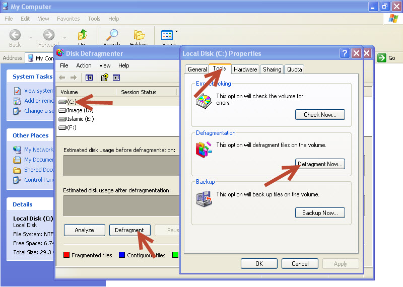 | بعد تشغيل نسخة ويندوز اكس بى xp لفترة على جهاز الكمبيوتر لديك, يصبح الويندوز بطىء الى حد ما وتتراكم الملفات المؤقتة فى محرك الأقراص c وهذه الملفات تصبح مجزأة مما يؤدى الى انخفاض كبير وملحوظ فى الأداء, ويصبح بارتشن النسخة لديك ممتلىء مما يؤدى الى انخفاض أداء وظائف الوصول للذاكرة الظاهرية على القرص c. ![]() ولضمان بقاء نسخة الويندوز لديك سريعة ونظيفة اليك بعض النصائح لجعلها أسرع وأكثر كفاءة. إزالة الفيروسات وبرامج التجسس. استخدم برنامج مكافحة فيروسات مجاناً مثل "avast". وقم بتشغيل الفحص كاملا كل 24 ساعة و تأكد من أن يتم تحديث البرنامج بشكل منتظم. إلغاء تثبيت البرامج غير المستخدمة. انتقل إلى لوحة التحكم control panal ثم إضافة/إزالة البرامج add or remove program وسوف ترى ما هي البرامج المثبتة حاليا على الكمبيوتر الخاص بك. انقر فوق إزالة remove لإزالة تثبيت أي البرامج التي لا تستخدمها. ![]() قم بتنظيف محرك الأقراص الثابت الخاص بك. قم بفتح مستعرض الكمبيوتر my computer ثم اضغط بزر الماوس الأيمن على محرك الأقراص c:، وحدد خصائص propertiesثم انقر فوق تنظيف القرصdesk cleanup وبعد اكتمال الفحص انقر فوق موافق ok لتنظيف القرص.. إلغاء تجزئة القرص الثابت الخاص بك Defragment . قم بإغلاق كافة البرامج قيد التشغيل، وفتح جهاز الكمبيوتر ثم انقر بالزر الأيمن على محرك الأقراص c:، حدد خصائص ثم انقر على علامة التبويب أدوات tools وانقر فوق إلغاء التجزئة الآن Defragment Now لمسح وإلغاء تجزئة محرك الأقراص الثابت الخاص بك. ![]() قم بتعطيل برامج بدء التشغيل غير الضرورية. انقر فوق "ابدأ" ثم "تشغيل. Run اكتب "msconfig" ، انقر فوق "إدخال" ok ، ثم حدد "بدء التشغيل ".startup قم بإلغاء تحديد أي البرامج التي لا تحتاج إليها فى بداية تشغيل الجهاز ثم انقر فوق "تطبيق"ok ثم أعد تشغيل الجهاز restart. ![]() تعيين الذاكرة الظاهرية. virtual memory انتقل إلى "لوحة التحكم" control panal ثم "النظام "system ثم "خيارات متقدمة " Advanced انقر فوق الزر" إعدادات " setting تحت الأداء performance انقر فوق "خيارات متقدمة" Advanced ثم الزر "تغيير"change تحت الذاكرة الظاهرية.virtual memory وتأكد من تحديد "حجم يديره النظام"system managed size ثم انقر فوق "موافقok ". ![]() ملحوظة: لتسريع الكمبيوترأكثر، قم بحذف أي رمز من رموز البرامج غير المستخدمة shurcut, ملف أو مجلد غير مستخدم موجود على سطح المكتب الخاص بك. والى درس أخر ان شاء الله المصدر : مدونة برامج كيف |