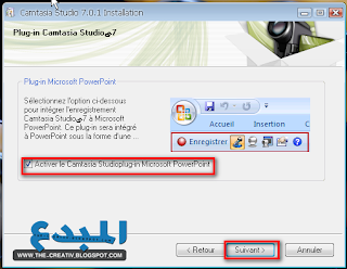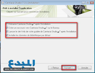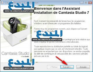 | بسم الله الرحمن الرحيم اقدك لكم اليوم شرح تركيب برنامج المشهور في تصميم الفيديو و .... وهو برنامج camtasia studio 7 هذه الآخر صورة من التنصيب نبدأ بعملية التنصيب وسوف ترون الصور بالتثالي نذهب للبرنامج ثم ننتظر بعدها تاتينا هذه نضغط فيها على التالي ثم نواصل الضغط على التالي الآ نضيف السيريال انه ظاهر في الصورة فقط قم بالتكبير ثم نضغط على مواصلة ثم نختار مكان التنثيب ونضغط على التالي الآن هنا الاختياري تحديد تلك الخانة ثم نضغط على التالي نختار التحديدات كالتالي ونواصل الآن ننتظر عملية التثبيت والنهاية شكرا على تتبعكم لموضوعنا هذا وارجوا ان تكونوا استفدتم منه كثيرا نلتقي في موضوع قادم ان شاء الله جيمع الحقوق محفوظة لمدونة المبدع