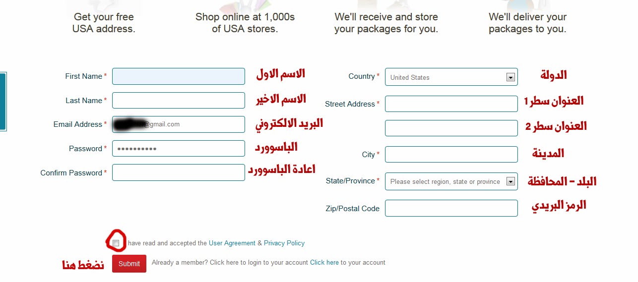 | شرح لطريقة الحصول على عنوان في الولايات المتحدة الامريكية لاستلام البريد وشراء من موقع ebay.com وموقع amazon.com والعديد من المواقع واستلام الشيكات الامريكية وتفعيل الباي بال وارسال البن كون من المواقع التي تدعم فقط الولايات المتحدة . اليوم ومع الموقع الذي يقدم الخدمة مجانا parcelzoom.com مميزات هذا الموقع ( يدعم كل الدول العربية , ارسال بالبريد السريع Fedex و DHL ) شرح التسجيل في parcelzoom والحصول على عنوان ثم نقوم بملئ البيانات بما هو مطلوب ( موضح بالصورة ) ![]() بعدما انتهينا من ملئ البيانات بالشكل الصحيح - ملاحظة : يجب ان يكون عنوانك صحيح 100% لكي لا تواجهة مشاكل في استلام الاغراض لبلدك لاحقا . نضغط الان على Sumbit سوف يقوم الان الموقع بارسال رسالة للبريد الذي سجلنا فيه تحوي رابط لتفعيل الحساب ومعلومات تسجيل الدخول نذهب الى البريد ![]() والموقع ايضا فيه العديد من الميزات منها تتبع البريد وسوف نشرح الموقع بالتفصيل في الدروس القادمة |