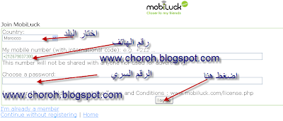 اليكم شرح افضل الشركات في ارسال sms بالاضافة الى المحادتة و خدمات عديدة و كله مجانا الشرح بالصور 1 اضغط هنا للتسجيل او على الصورة التالية Join MobiLuck for free ! سوف تضهر الصورة التالية ادخل المعلومات 2 ![]() بعدها ستظهر هذه الصورة 3 ![]() الان انتهيت من انشاء حساب سوف يظهر حسابك كما في الصورة 4 ![]() بعجما تضغط على send free sms سوف يظهر لك اطار سوف تملاه و ا رسل الرسالة كما في الصورة 5 ![]() بعدها ستاتي سيعلمك بان الرسالة قد تم ارسالها و بالتوفيق للجميع يسمح بنقل الموضوع لتعم الفائدة |