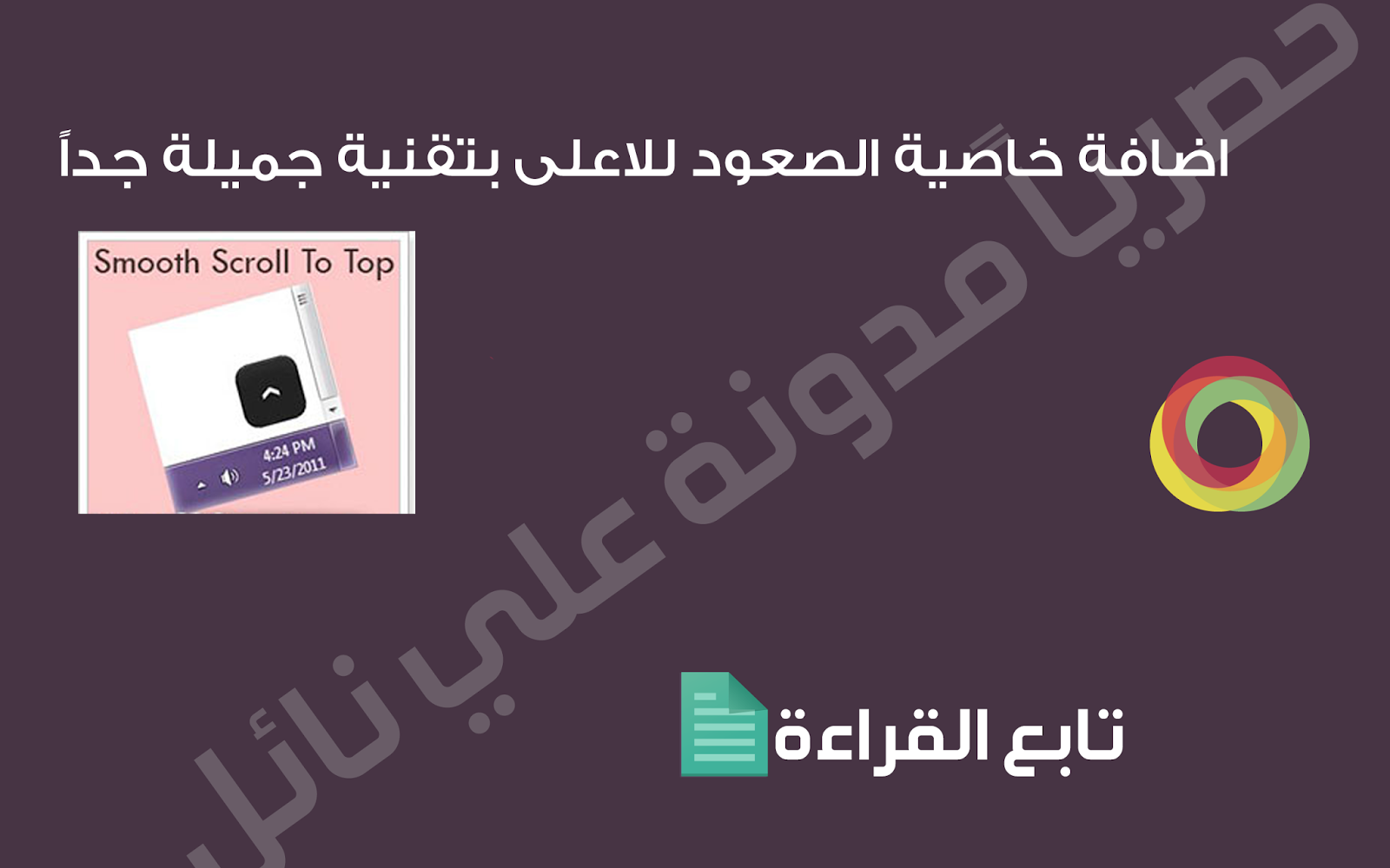 السلام عليكم ----------------------------------------------------------------------------------------- بعض مواضيعي المميزه خط قناة بي ان سبورت beinsport للفوتوشوب حصريا مدونة علي نائل خطين جديدين لمدونات بلوجر حصريا مدونة علي نائل ايقونات سوفت الاحترافيه للفوتوشوب 2014 --------------------------------------------------------------------------------------- شرح كيفية اضافة خاصية الصعود الى الاعلى !!!!! صورة للاداة : http://2.bp.blogspot.com/-y2FaKHOXvY...mple+(218).png تنويه : انا اخذت الطريقة من موقع اجنبي فلا اعلم ان كان احد قد نقلها قبلي !!!! مثال مباشر على الاداة مدونتي صورة متحركة للاداة http://2.bp.blogspot.com/-bRuzSkgNqU...0/s1600/tt.gif نأتي الان الى الشرح اذهب الى لوحة التحكم ------> ثم اذهب الى قالب ------> ثم اضغط على تحرير وإبحث عن ثم اضف الكود التالي فوقها مباشرة ((تجاهل هذه الخطوة إذا مدونتك تحوي مثل هذا الكود)) ثم ابحث عن وأضف بعدها الكود التالي رمز Code: #w2btoTop {display:none;text-decoration:none;position:fixed;bottom:10px;right:1 0px;overflow:hidden;width:51px;height:51px;border: none;text-indent:-999px;background:url(http://2.bp.blogspot.com/-oVa1ImctF7...g.ui.totop.png) no-repeat left top;} #w2btoTopHover {background:url(http://2.bp.blogspot.com/-oVa1ImctF7...g.ui.totop.png) no-repeat left -51px;width:51px;height:51px;display:block;overflow :hidden;float:left;opacity: 0;-moz-opacity: 0;filter:alpha(opacity=0);} #w2btoTop:active, #w2btoTop:focus {outline:none;} المصدر: مدونة علي نائل ----------------------------------------------------------------------------------------- بعض مواضيعي المميزه خط قناة بي ان سبورت beinsport للفوتوشوب حصريا مدونة علي نائل خطين جديدين لمدونات بلوجر حصريا مدونة علي نائل ايقونات سوفت الاحترافيه للفوتوشوب 2014 --------------------------------------------------------------------------------------- __DEFINE_LIKE_SHARE__ |