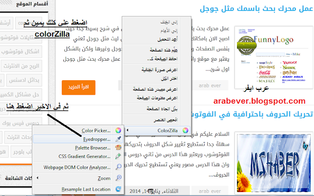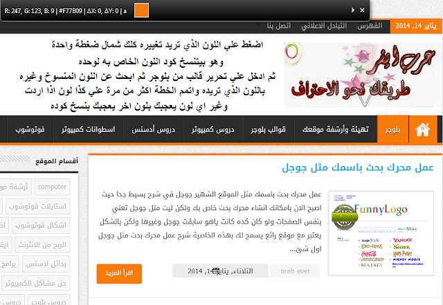 الان شرح استعمال colorzilla وتغيير لون القالب