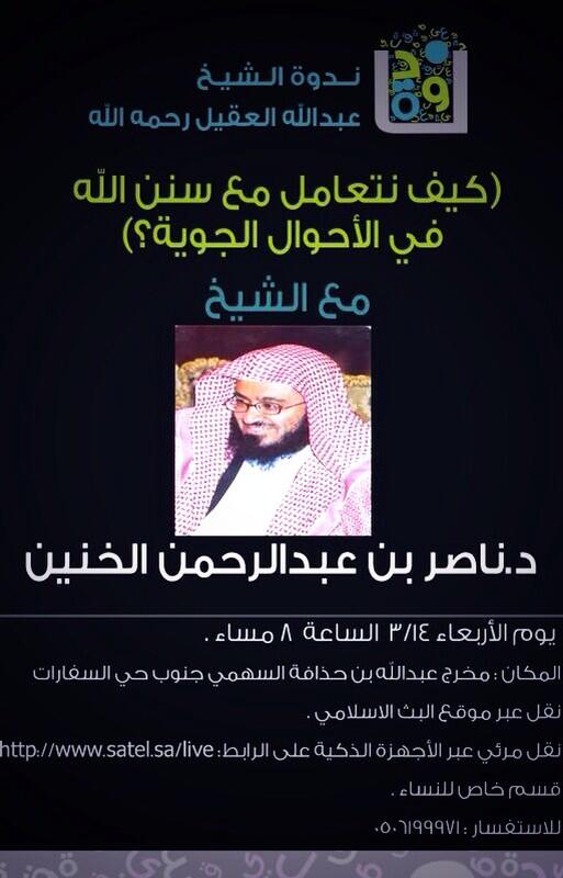 السلام عليكم ورحمة الله وبركاته اسعد الله اوقاتكم بكل خير أيها الاحباب اليكم تسجيلا لندوة بعنوان كيف نتعامل مع سنن الله في الاحوال الجوية-الشيخ د .ناصر الخنين سلمه الله الاربعاء 14/3/1435 في ندوة عبدلله العقيل رحمة الله تعالى وسامحونا على بعض الخلل لسوء الاتصال لدي .. ... ![]() .. ![]() .. ![]() ... ![]() ... ![]() .. ![]() ... ![]() .... ![]() الفيديو http://www.youtube.com/watch?v=m2dL8HuhfYg ونسال الله ان يجزى الدكتور ناصر خيرا الجزاء حفظكم ربي ورعاكم ونسال الله الغيث العميم محبكم ابومحمد |
