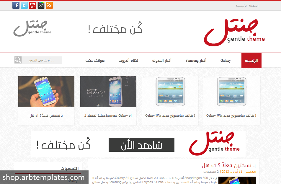 | بسم الله الرحمن الرحيم الحمدالله رب العالمين والصلاة والسلام على آشرف الأنبياء و المرسلين سيدنا محمد وعلـى آله وصحبه وسلم ، أما بعدكما عودناكم أحبتنا الكرام على أصدار منتجات جيدة و مميزة ، فها نحن اليوم نقوم بأصدار منتج جديد ينضم تحت سقف shop themes و التي تعنى بأصدار قوالب مميز وذات كفائه عالية وصالحة للمشاريع المميزه أيضاً ، هذه المرة لدينا قالب ذو طابع حديث لنترككم معه فدعوه يوصف نفسه ..نبذه عني معكم gentle themes أحد القوالب المميزة التي أصدرتها شوب ثيم أمتاز بطابع حديث جداً وقد صممت بأحدث التقنيات و أضيفت لي أهم الخواص التي تجعل مني قالب رائعاً ..مواصفاتي قد صممت بشكل مواكب للنقله النوعية الجديدة في عالم تصميم المواقع و الويب و أنعم بتصميم مميز مسطح ، مما يعطني شكل أكثر جاذبية و حداثه إليك ياعزيزي بعض مميزاتي :-