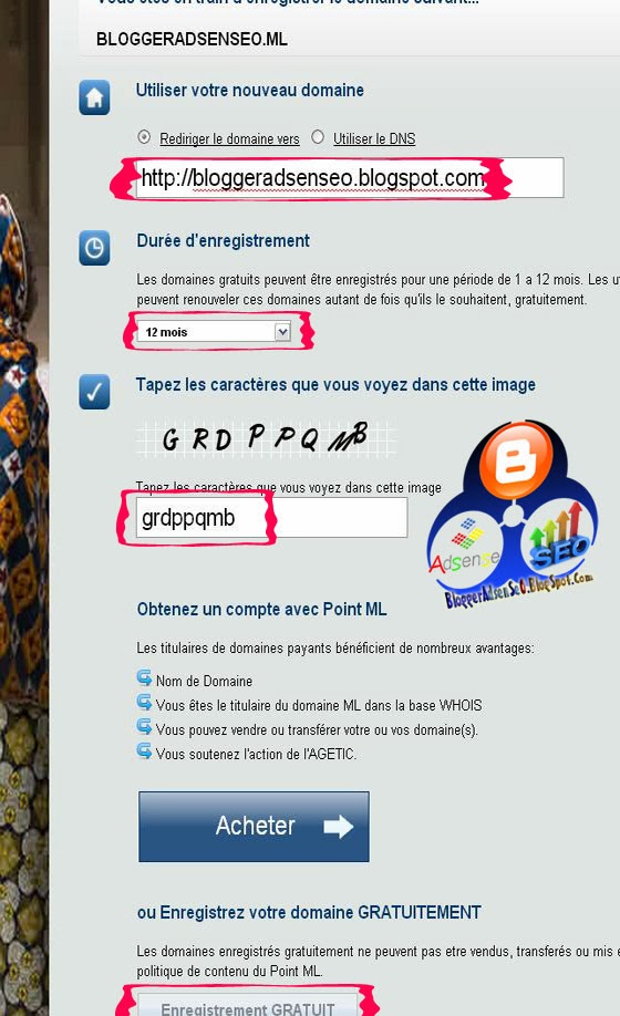 | السلام عليكم .. الكثير من مدوني بلوجر و وورد بريس يحبون ان يكون رابط مدونتهم او موقعهم قصير قدر الإمكان .. طبعا الأغلبية يحبون النطاقات الرسمية ..لكنها تحتاج لبعض الدولارات .. (سيتم شرح طريقة الحصول على النطاقات الرسمية ..في أحد المواضيع القادمة إن شاء الله ..) لكن تبقى هذه النطاقات كـ حل مؤقت .. خصوصا لمن يعتمود على نشر موقعهم ومدونتهم .. وطريقة ربط مدونتك بـ أحد هذه الدومينات CF .ML .GA .Tk. ..بسيطة و وسهلة .. يعني بـ إمكان الجميع تطبيقها ..وفي وقت وجيز .. اضافة إلى ان الدومين الذي تختاره يعمل مُباشرة بعد إكمال خطوات التتسجيل .. وهذا الدومين المجاني يبقى مُتاح لك لمدة سنة كاملة .. على أن تجدده ..أو تمر لـ مرحلة الشراء إن أردت .. المهم ساشرح لكم طريقة الحصول على نطاق مجاني .. بالصور والشرح خطوة خطوة .. > إدخل للموقع : FreeNom.Com > أكتب الإسم الذي تريده كـ رابط لمدونتك أو موقعك .. > ثم إختر النطاق لذي تريد CF .ML .GA .Tk. : ![]() > ضع رابط مدونتك الذي تريد ربطه بالرابط الجديد : ثم إختر 12 شهر ..لحجز الدومين لسنة كاملة .. > أعد كتابة الأحرف الموجودة في الصوورة .. ثم إضغط في الأسفل على تسجيل مجاني .. > أدخل إيميلك .. ![]() > أدخل معلوماتك الشخصية .. ![]() > مبروك عليك عملية حجز الدومين المجاني بنجاح.. إضغط على Cliquer ICI ..لتتوصل برسالة تفعيل الحساب.. ![]() > أدخل إلى إيميلك ..-ممكن أن تجد الرسالة في سبام- وإنسخ كود التفعيل .. إضغط على الرابط في الرسالة .. ستفتح لك هذه النافذة .. > إلصق الكود المنسوخ ..ثم إضغط على تفعيل .. ![]() > ادخل إلى حسابك في الموقع .. وستجد دومينك الجديد مُفعل .. ادخل له وستجده يعمل مباشرة.. ![]() مبروك عليك الدومين الجديد.. وعلي أيضا BloggerAdsenSeO.CF .. ملاحظة : يمكنك حجز نطاقات أخرى مجانية من نفس الصفحة .. فقط إضغط على إضافة دومين ... ايضا يمكنك تغيير معلومات الدومين او حذفه .. + يبقى رابط مدونتك القديم يظهر إن دخلت به..ويعمل بالدومين الجديد أيضا .. |