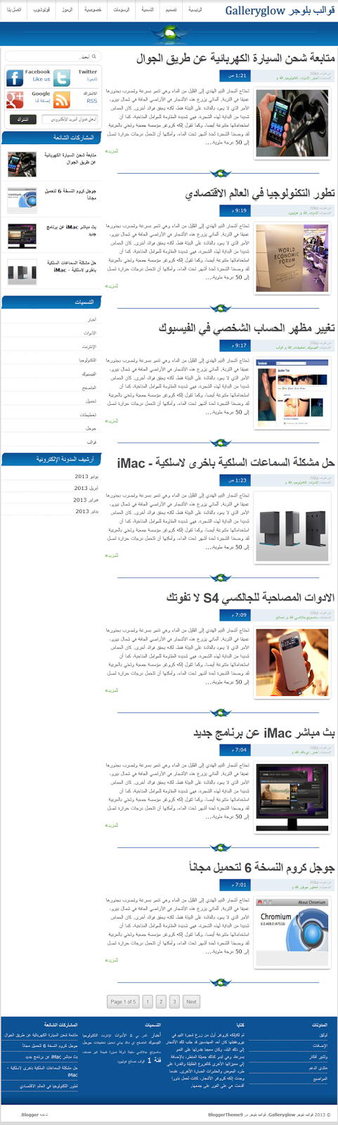 خصائص وميزات قالب جالرى جلو المعرب galleryglow لمدونات بلوجر -يتميز القالب بالبساطة والأناقة فى ان واحد - سهل الأستخدام وسهل التصفح -مناسب جداً لأعلانات جوجل ادسينس - متوافق مع محركات بحث جوجل والمزيد والمزيد من الميزات اتركك لتكتشفها بنفسك معاينة حية لقالب جالرى جلو المعرب galleryglow من هنا تحميل قالب جالرى جلو المعرب galleryglow من هنا او من المرفقات وهذه صورة من القالب ![]() الملفات المرفقة ![]() |