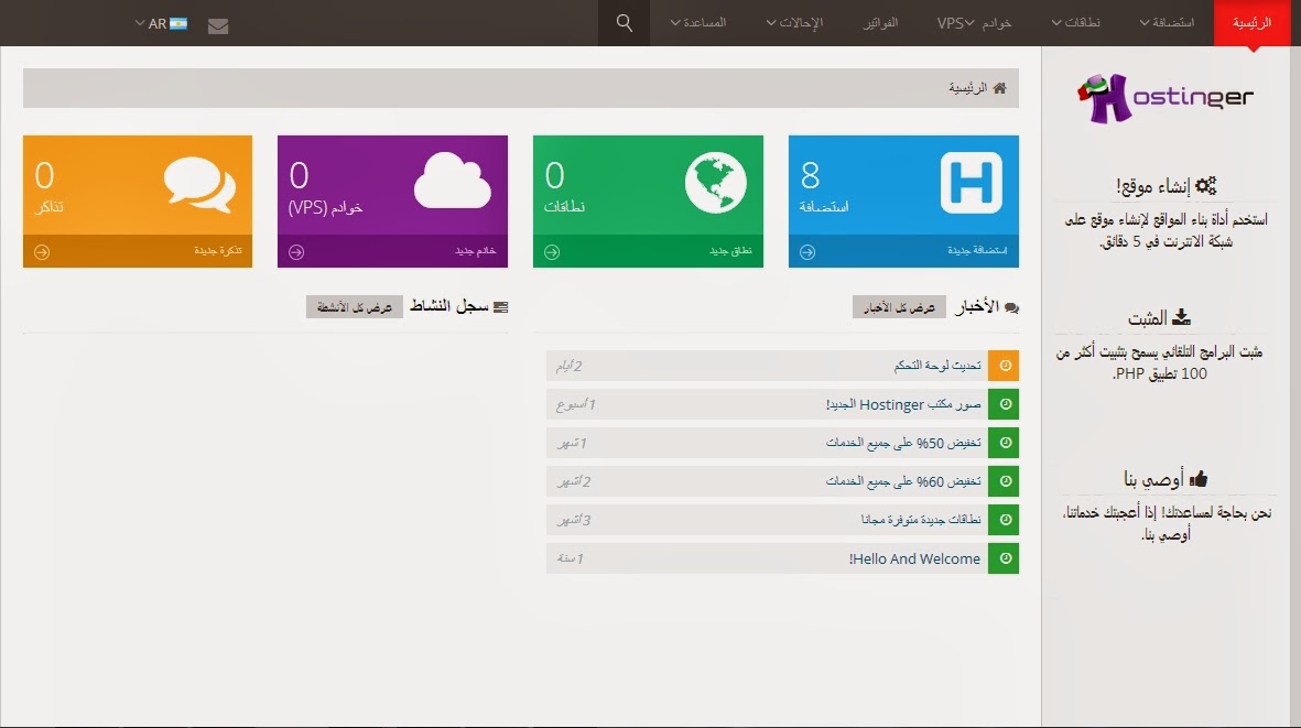 | Hostinger الإمارتية العربية, التي تقدم خدمة الاستضافة المجانية و كذلك المدفوع , حيث تمكنك من الحصول على حساب مجاني عنده مميزات منها 2000 ميغابيت , مساحة قرص و 100ميغابيت عرض نطاق ترددي. ![]() ومن مميزاتها دعم PHP و MySQL دون أي قيود. محرك PHP يأتي مع جميع الميزات والوظائف. يمكنك الانتقال إلى أي إصدار PHP في نقرة واحدة وإدارة قواعد البيانات مع الاداة phpMyAdmin. الجيل الجديد من الاستضافة المجانية انسى الصور النمطية عن شركات الاستضافة المجانية على الشبكة العالمية. Hostinger مختلف. تقدم استضافة موثوق بها وغنية بالميزات مع دعم للمستخدمين! 99.9٪ من جهوزية الخدمة، وذلك بفضل تكنولوجية الحوسبة السحابية. مثبت البرامج الأتوماتيكي فقط مع عدد قليل من النقرات، يمكنك تثبيت ووردبرس، جملة، بريستاشوب، منتدى، دروبال، والعديد من البرمجيات. يمكن تعيين موقعك على الانترنت يعمل بكامل طاقته في غضون دقائق. ﻻ إعلانات أو لافتات على صفحات موقعك ﻻ روابط نصية. لا نوافذ مزعجة. لا لافتات مزعجة. لا تكليف للنشر في المنتدى. سوف يكون موقع الويب الخاص بك مجانا و 100 بالمئة خالي من الإعلانات إلى الأبد. باني المواقع سهل الاستخدام الآن يمكنك بناء موقع الويب الخاص بك بسهولة بالغة. حتى مبتدئ كمبيوتر يمكنه إنشاء موقع على الشبكة مع باني موقعنا على الانترنت! اختر واحد من 100 قالب و احصل على موقع الويب الخاص بك جاهزا في 5 دقائق. __DEFINE_LIKE_SHARE__ |