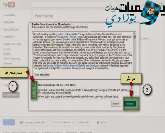 [IMG][/IMG] المرحلة الخامسة و هي المرحلة الأخيرة و الأساسية في إنشاء حساب أدسنس و في نفس الوقت عن طريق قناتك كيف ?? أولا تذهب إلى هذا الرابط https://www.youtube.com/account_monetization بعدها نتبع الصور التالية : 1) [IMG][/IMG][IMG][/IMG] [IMG][/IMG] [IMG][/IMG] [IMG][/IMG] [IMG][/IMG] إذن هذا هو درسنا كان طويلا جدا و لكن كانت طريقة و معلومة غاية في الجمال إلى حصريات أخرى و دروس أخرى أتمنى أن تشجعونا بتعاليقكم و ردودكم إذا أردتم مثل هذه الدروس ^-------------------------^ كان معكم حمزة بوزادي مدير المدونة لن أسامح أي من زار هذا الموضوع الحصري بمعنى الكلمة و لم يزر رابط موضوعنا الحصري لكي يعطي كلمة شكر هو أيضا في التعليقات أنتظرك رااااااااااابط الموضوع : حصريا : طريقة الحصول على حساب أدسنس في ساعات معدودة __DEFINE_LIKE_SHARE__ |