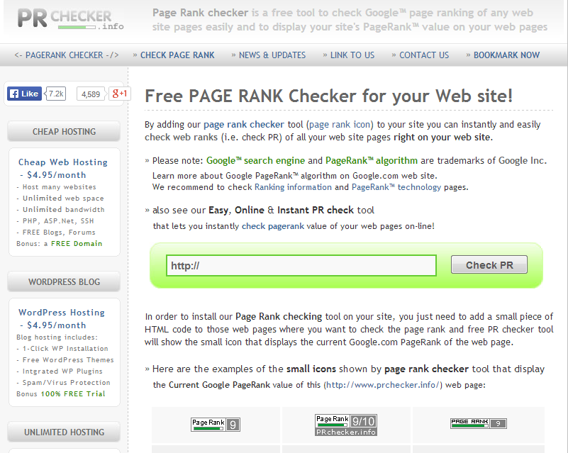 الان نأتي الى الشرح لقياس البيج رانك لأي موقع نذهب الى موقع Google PageRank هذه الواجهة الرئيسية كما في الصورة .. -