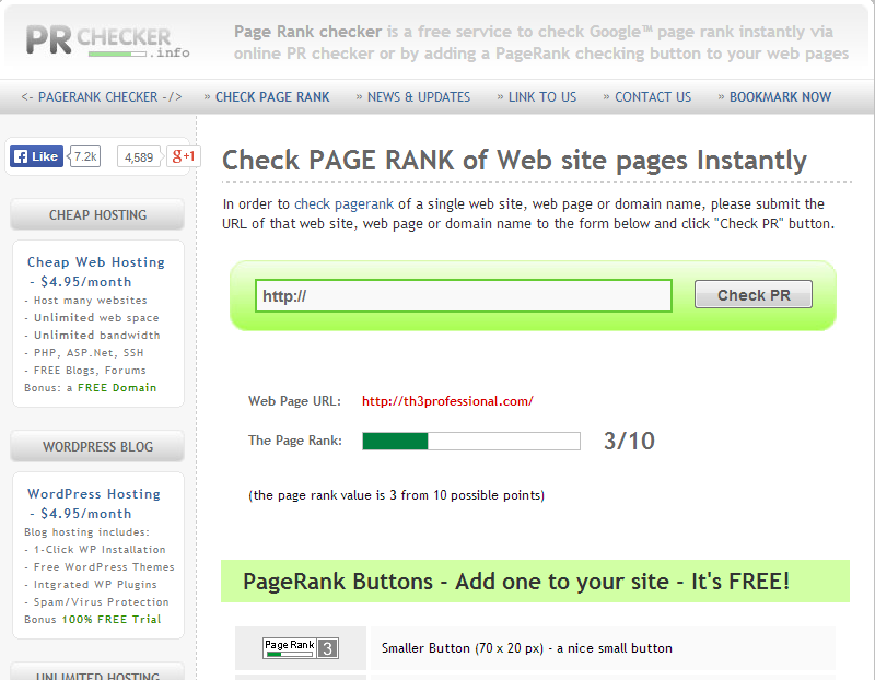الان في رابط الموقع نضع اي موقع تريد معرفة البيج رانك الخاص به . فمثلاً مدونة المحترف عليها بيج رانك 3 كما في الصورة ...