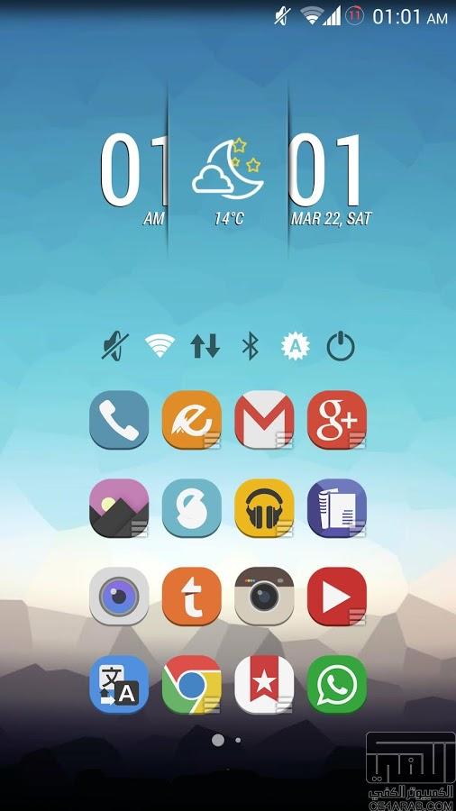 اقدم لكم ثيم رائع و هو Stock UI Icon Theme Apex Nova v8.1 Patched الذي حاز على استحسان الكثير ممن اشتروه في بلايستور ![]() …مميزات الثيم… *1200+ HD Icons *Icon Masking for all unthemed apps *30+ Cloud Wallpapers - for tablets i suggest you to download to sd and then set manually *Muzei Support *16 Docks for Nova Launcher *Alternative Drawer & App icons *Categorized apps in nova launcher selection *Icons request (via mail) functionality directly from dashboard app *Works with those launchers: Nova/Apex/Adw/Atom/Holo/ActionPro/Trebuchet/Go Launcher/Smart Launcher/Unicon (Icon Themer)/Aviate *May works with other launchers but it’s not 100% guaranteed بعض الصور: ![]() ![]() ![]() ![]() رابط جوجل بلاي: https://play.google.com/store/apps/d...karpia.stockui رابط تحميل مجانا من رفعي: http://up.media1fire.com/atgv8ysb9imz طريقة التحميل: ![]() والسلام عليكم |