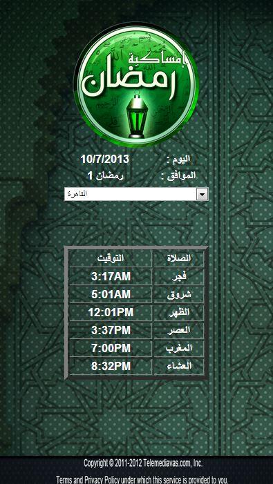 تقوم هذه الإمساكية بإخبارك بمواقيت الصلاة والامساك والإفطار خلال شهر رمضان الكريم فى القاهرة والمملكة العربية السعودية وتقوم بتبيهك للصلاة فى أوقاتها من خلال الآذان https://play.google.com/store/apps/details?id=com.telemediavas.Emsakah |