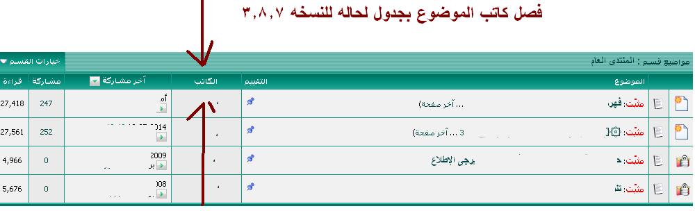 كما هو مبين اريد فصل كاتب الموضوع عن الموضوع بجدول لحاله