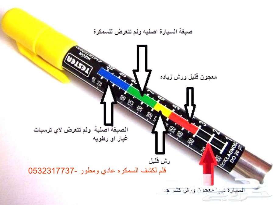 السلام عليكم ورحمه الله وبركاته.. اسعد الله اوقاتكم بكل خير وسرور يوجد لدي قلم لكشف السمكره والمعجون الورش ::: المميزات ::: صنع بولندي جودة عالية سهل الاستخدام القلم مغناطيسي وليس الكتروني وبالتالي غير قابل للعطل يوفر عليك قيمة الفحص عن الورش علماً بان الفحص عند الورش من 100 - 150 ريال بامكانك التجربة قبل الشراء ::: الطريقة ::: http://www.youtube.com/results?search...23290&aq=f الجهاز جدا سهل في الاستخدام فقط تضع الطرف المغناطيسي من القلم على بدي السياره ومن ثم يتم سحب القلم ويخرج من القلم اللون .. واللون الذي ينفصل عنده الجهاز يعطي دلاله معينه ... والمطور نفس الطريقه لكن مايفصل يثبت على نفس لون وضع البدي يوجد خمس الوان لمعرفة حالة البوية وهي اللون الازرق ويعني ان البوية في حالتها الاصلية وتعتبر جديدة جدا وهي من النوع السوبر اللون الاخضر ويعني ان البوية في حالتها الاصلية بدون اي رش او سمكرة اللون الاصفر ويعني ان البوية عليها رش او مسمكرة مرة واحد فقط اللون الاحمر وتعني ان البوية عليها رش ثاني اللون الاسود وتعني ان البوية معدومة وعليها رش اكثر من مرتين الشراء وطريقة التسليم: 1- أمكانية الشحن لجميع مناطق المملكة الرئيسية عبر زاجل والشحن على المشتري 30ريال 2- الإستلام من قبل المشتري في بالقصيم -الرس للطلب او الاستفسار 0532317737 العادي 200 ريال.. والمطور 230 ريال .. قابل للتفاوض بالمعقول ![]() ![]() ![]() ![]() ![]() ![]() ![]() |