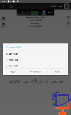 wps-connect-1-2-2-multi-android.apk ملحوظه:اذ لم يتم اختراق الشبكه فهذا بسبب ان صاحب الرواتر قام بتغير pin الاساسي |