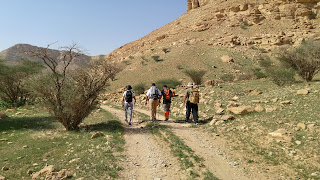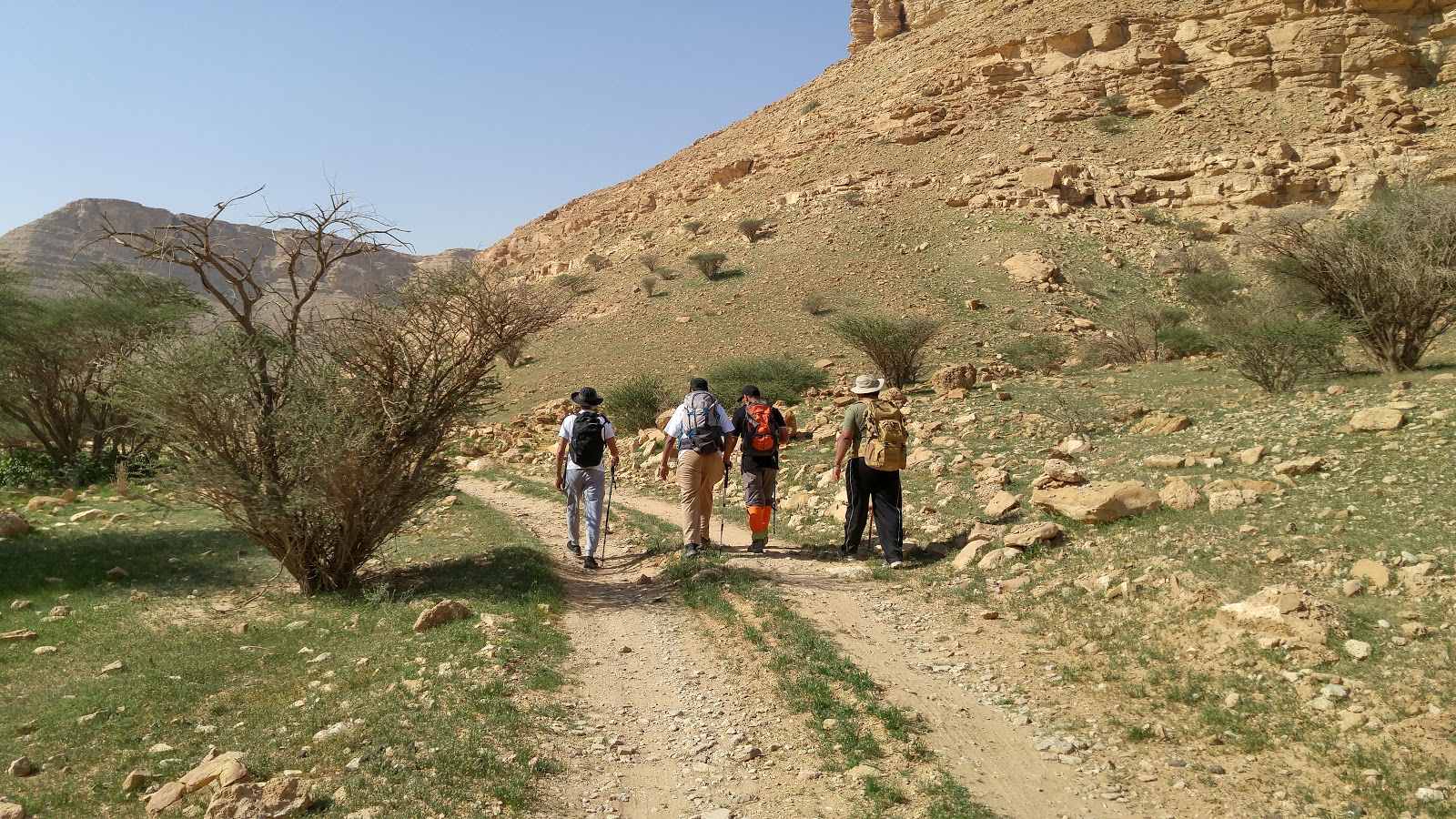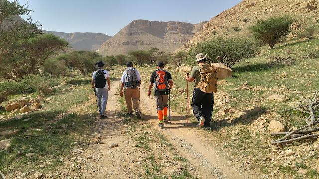 رحلة الهايكنج (الراجلة) في شعيب وثيلان كان يوم الخميس الفائت الموافق 11 ربيع الآخر 1437هـ يوما رائعا...والروعة بتجمع تلك المجموعة الفريدة والتي شجعت بعضها البعض في إحياء رياضة بيئية وذات صفات جميلة لكل مشارك في اثبات الذات والأستمرار بكوننا اصحاء ونبذ كل ماهو مثبط ومانع لحياة مليئة باللياقة والروح الشبابية المفعمة بالصحة والعافية. الحمدلله فقد التقينا بنخبة مميزة من هواة الراجلة (الهايكنج) والذين لم تمنعهم زحمة الاعمال والارتباطات من بلوغ الهدف والصبر عليه ونيل الأرادة ، حيث قد يممنا وجهنا نحو جنوب الرياض بنحو 100 كلم ، وبالقرب من الدلم والى الغرب منها كان لقائنا في شعيب وثيلان الضخم والمحمي من قبل هيئة الحماية الفطرية والزراعة .ويقع غرب من مدينة الدلم بنحو كيلومترات قليلة ، وقد ابقت الحماية على ماتبقى من اشجار وطبيعة التي غلبت عليها صبغة التحطيب المفسد وتلويث الارض، ولكن والحمدلله تم بعث الحياة فيه وبقية مما تبقى وهي الآن بأزدياد ولله الحمد والمنة ، وانقذ هذا الوادي باشجاره الوارفة وشغاياه العديدة وخاصة لاثار الربيع الحديثة التي رأينا. محمية شعيب وثيلان محمية شعيب وثيلان والتي صدر المرسوم الملكي بتحويلها لمحمية عام 1432هـ والحمدلله بعد أن كاد يفنى من قبل عديمي الأحساس البيئي والذين تولوه بالقطع الجائر للأشجار وتجريف الأرض. ![]() ![]() ومنذ 1432هـ اصبح الشعيب المميز منطقة محرمة الا من التنزه والتجول في محيطه ، إذ يبلغ متوسط عرض الشعيب 500متر وبطول 60كلم تقريبا بجميع أفرعة والتي منها الجلبية وبريريد والطرق وأم الألحاق وبني دجين والمسمى والرخيمة والبقري وابونخيلة والرخيمية وعجاج والمزيق والحمضية والحماضة والحصاة وأم طبيق والعديد من الشغايا التي هي تردف الشعيب الأم. ![]() وقد تم الحفاظ على الشعيب محافظة مستمرة بأيجاد بوابة عليها حراس من قبل الزراعة لمنع أي محاولة لحمل الحطب او تخريب الشعيب ، وتم وضع مواعيد لدخول وخروج المتنزهين للشعيب فهو يفتح يوميا السادسة صباحا عدا الأحد والأربعاء للنظافة والترميم ويغلق السادسة مساء للدخول ويبقى من يبقى لليوم التالي والخروج مسموح عدا الدخول.ولذا كان وصولنا اليه مساء الأربعاءوكان مغلقا، فبتنا ليلة الخميس خارج المحمية ، وهذا أمر افرحنا كثيرا للضبط وعدم السماح للزوار بالتحطيب او بدخول الأبل أو الماشية... وحيث كان تجمع الاخوة المشاركين وهم ابو احمد الدعفس من حايل وابو زياد الحميدان من الرياض وعبدالله الاحمد من الشرقية واكمل لقائنا دكتور الهايكنج ومؤسس دروب العرب لتعزيز الصحه بالرياضة د. صالح ابوحسان الأنصاري فقد وضعنا رحالنا عند وادي السوط وهو مفيض لشعيب وثيلان . وبعد نومة هانئة لم يكدرها الا تلك البكرة الجهماء المزعجة التي ابت الا ان تشاركنا منامنا مع حرصنا على إحاطة السيارات مع الظلع الصخري لنكوّن مخيم محمي من دخولها لعلمنا بتواجدها اثناء عشائنا.ولكن في منتصف الليل دخلت خلسة من مكان ضيق وبدأت بالبعثرة مما ازعج بعض الشباب فقام بهوشها فقامت تبحث عن مخرج فجعلت تصطدم بسيارتي وانا نائم داخلها ...اكملنا نومنا واستيقظنا فجرا وتم أداء الصلاة والحمدلله وجلسنا نتقهوى وثم قام احد الشباب باعداد الإفطار وافطرنا الصباح ثم انطلقنا نحو بوابة الشعيب.توغلنا في الشعيب (وثيلان) لمسافة 12 كلم ومنه الى الشمال الى شعيب آخر يسمى وادي الجلبية واستمرينا في المسير نحو 5 كلم لنتوقف حيث بدأت الارض بالوعورة ، وهنا بدأنا الاستعداد لرياضة الهايكنج والتي يصل طول المسار المقدر مسبقا ذهابا 8 كلم وعودة مثلها وفي نهايتها عين أو جلتة كديراء التي هي جائزتنا للمسار الطويل والصعب.ولمن يريد معرفة مسار الراجلة اليكم هذا الرابط . بداية اللبس والاستعداد للمشي طبعا كان تجهيزنا واستعدادنا للرحلة كان اولا بلبس رياضي مرن ومريح للمشي وللارتقاء مع حقيبة ظهر بها خزان ماء يحوي ثلاثة لتر من الماء مع بعض الحاجيات الضرورية، كما تتوفر عصا لكل هايكنجي (راجلة) تساعده بالمشي ولها مآ